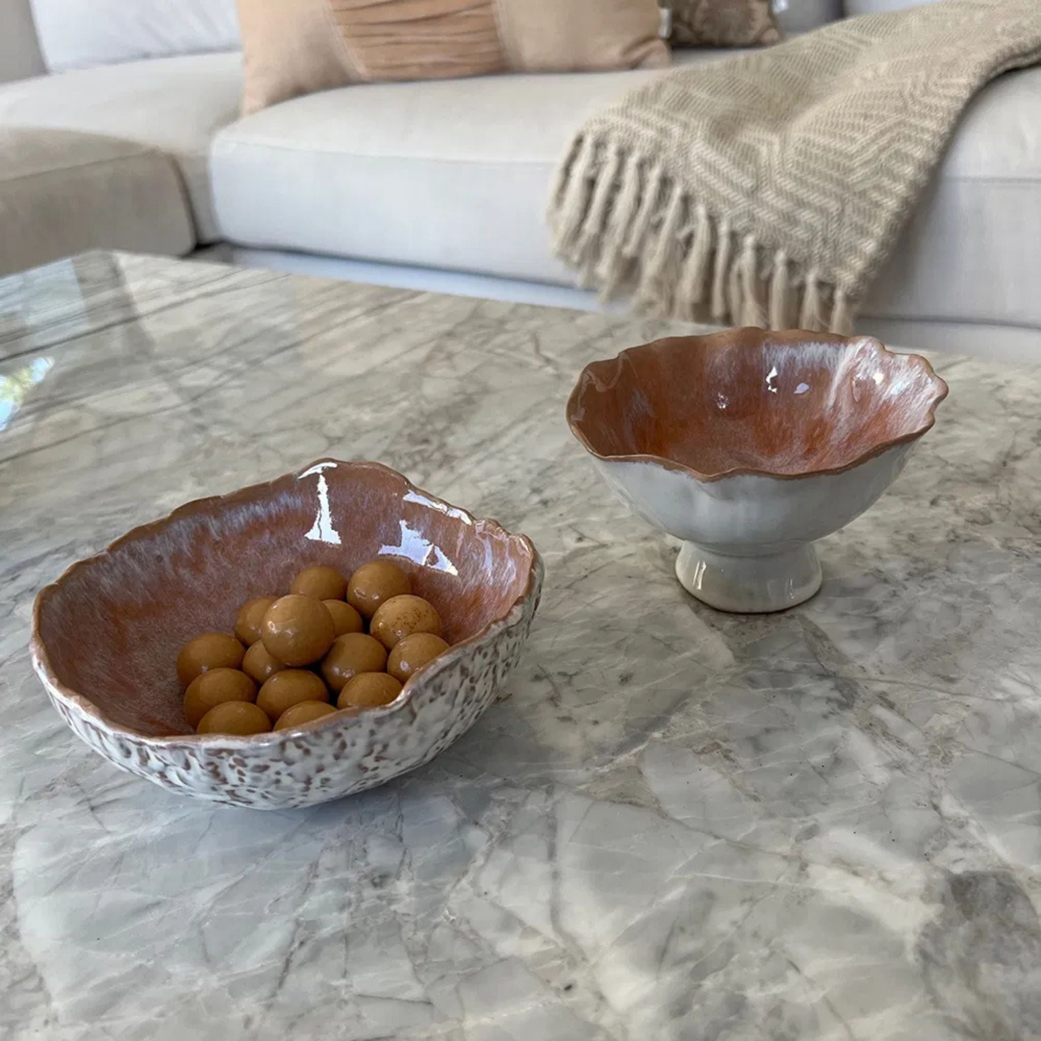 Die Glasur und der handgefertigte Ausdruck machen jede Schale zu einem Unikat und verleihen dem Zuhause eine persönliche Note.