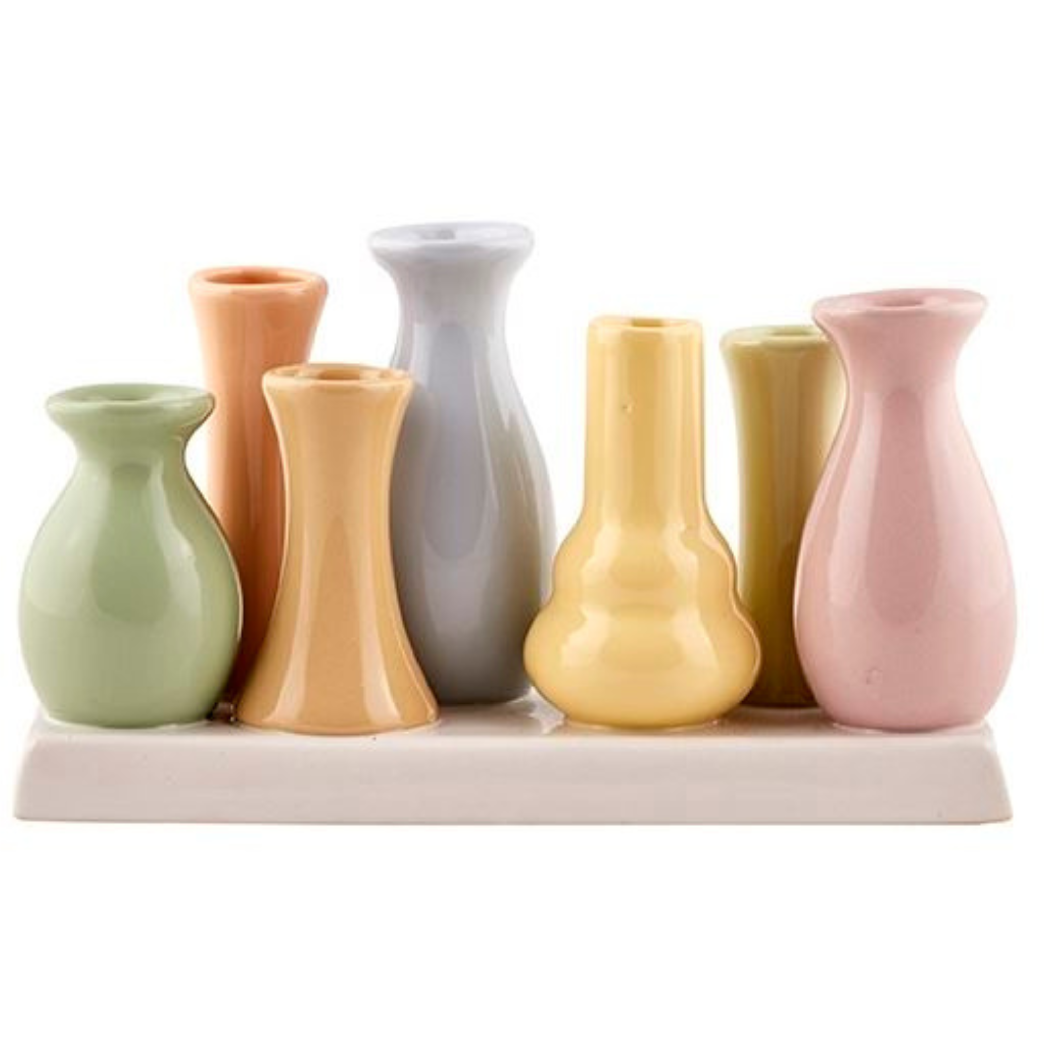 Hübsche und dekorative Vasen auf einer Platte in verschiedenen Pastellfarben von 2Have.