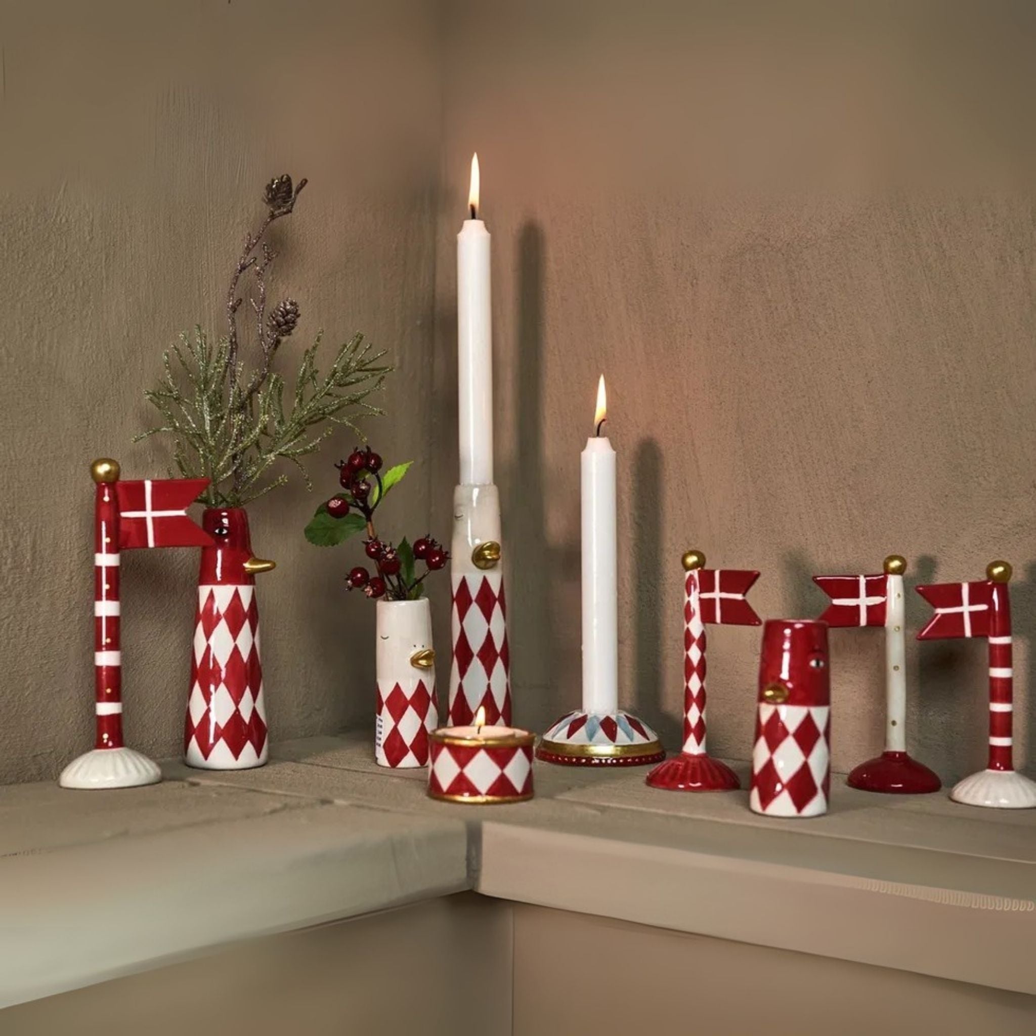 Feiern Sie dänische Traditionen mit einem eleganten Fahnenmast aus Keramik mit dem Dannebrog, der in drei Varianten erhältlich ist und Ihrem Zuhause und Ihrer Tischdekoration eine stilvolle und festliche Note verleiht.