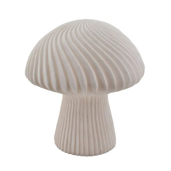 Die Mushroom LED-Lampe in Weiß besteht aus langlebigem Polyresin und hat eine dekorative und gemütliche Optik, die perfekt in den Innenbereich sowie in den Garten oder auf den Balkon passt.