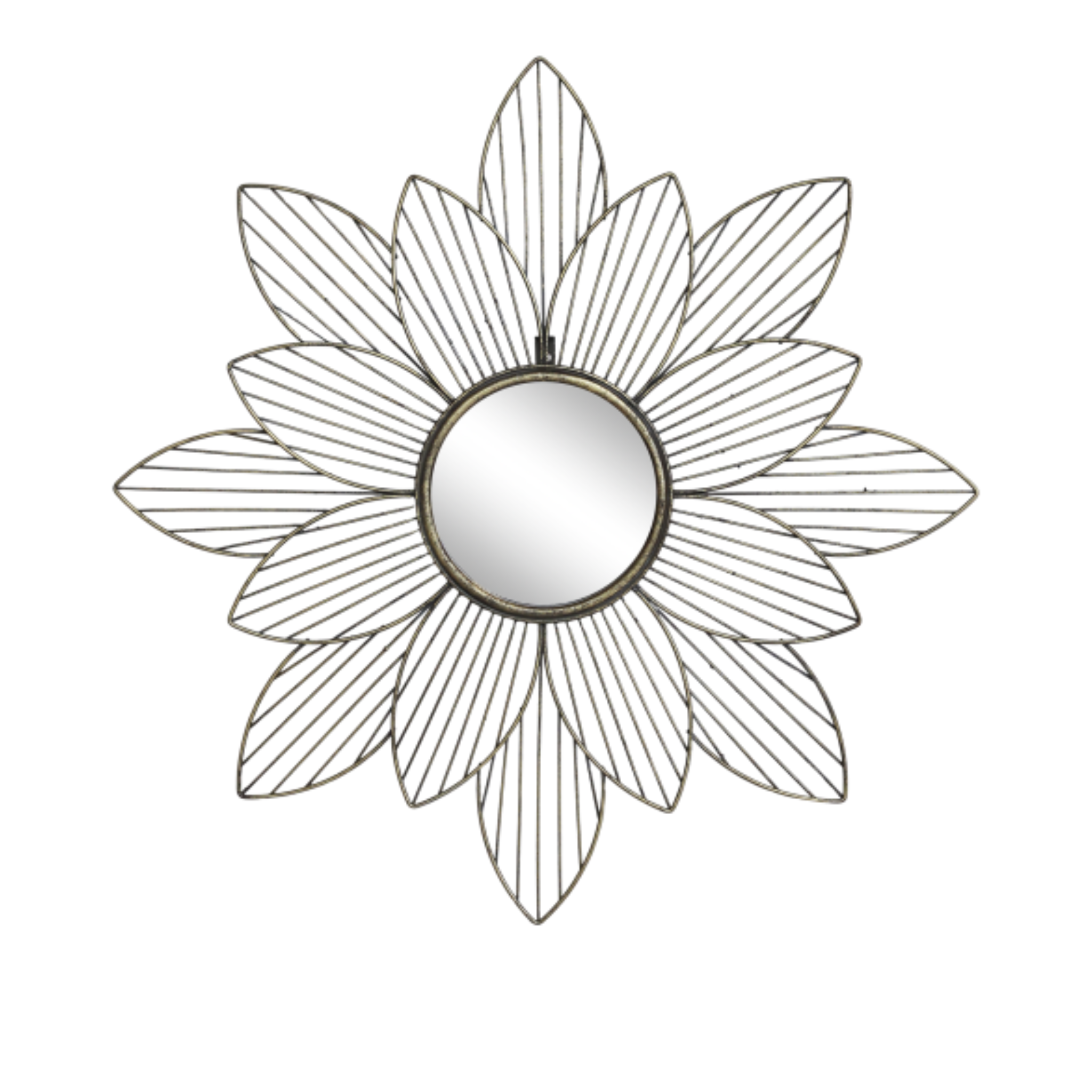 Verleihen Sie Ihrem Zuhause einen einzigartigen Charme mit unserem wunderschönen Spiegel in Blumenform. Dieser Spiegel ist mehr als nur ein Spiegelbild – er ist ein Kunstwerk, das die Schönheit der Natur und Vintage-Eleganz in einer atemberaubenden Dekoration vereint. Die weichen, geschwungenen Blütenblätter im antiken Messing-Finish erzeugen einen warmen, goldenen Glanz, der jedem Raum einen Hauch von Romantik verleiht.