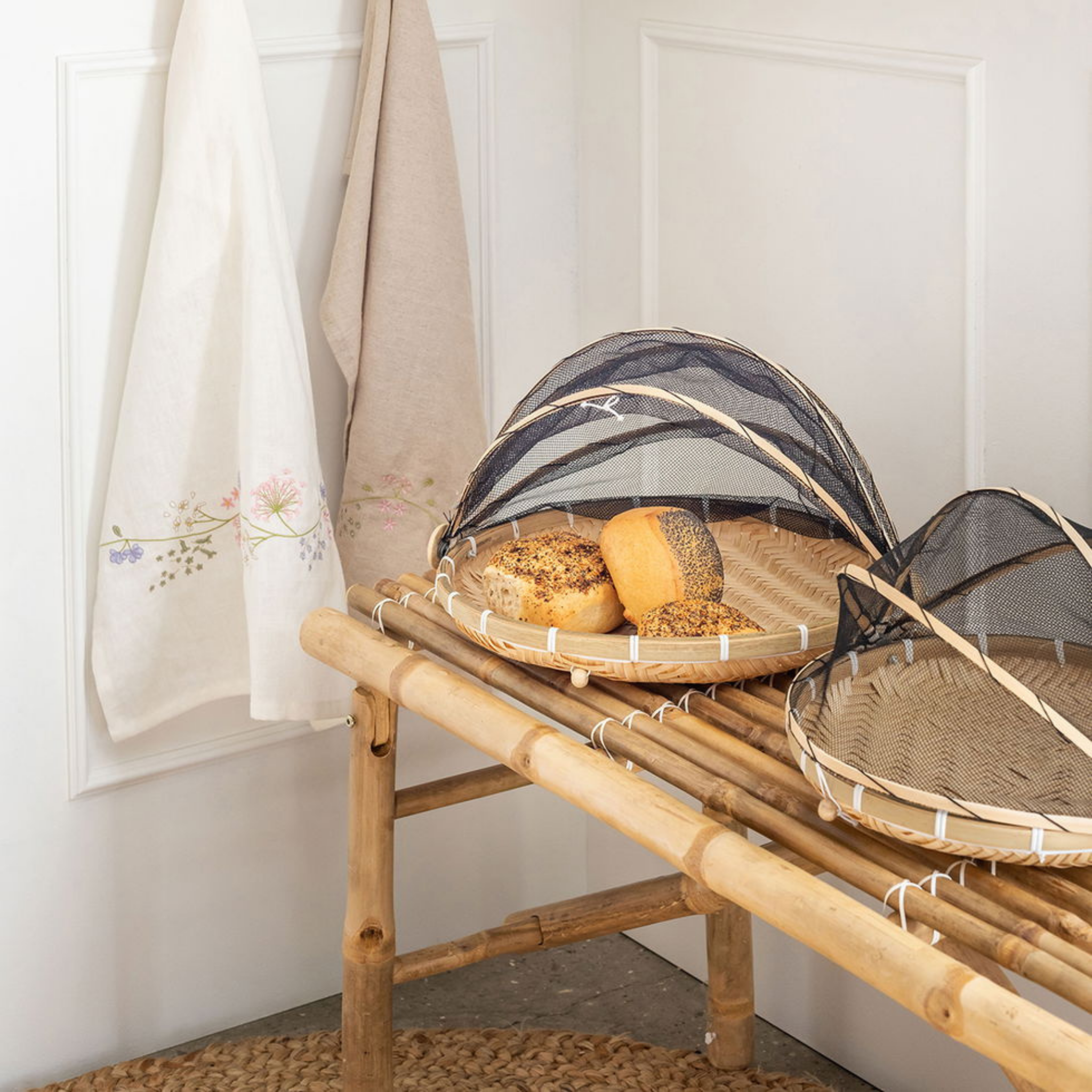 Bambustablett mit Fliegennetz zum Schutz der Lebensmittel vor Speedtsberg.