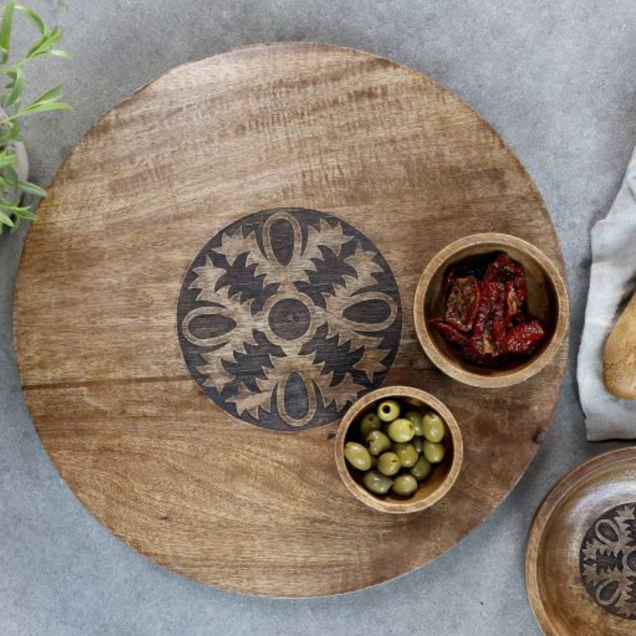 Verwandeln Sie Ihre Mahlzeiten in ein Festmahl mit unserer luxuriösen Tapas-Platte mit drehbarem Sockel, handgefertigt aus wunderschönem Mangoholz. Dieses Gericht ist nicht nur eine praktische Servierlösung, sondern auch ein ästhetischer Genuss. Das warme Mangoholz hat einen natürlichen Glanz und einzigartige Maserungen, die jedes Gericht zu einem einzigartigen Kunstwerk machen. Der intelligente Drehsockel erleichtert allen Gästen den Zugriff auf ihre Lieblingsspeisen und sorgt so für ein gemütliches und interaktives Speiseerlebnis.