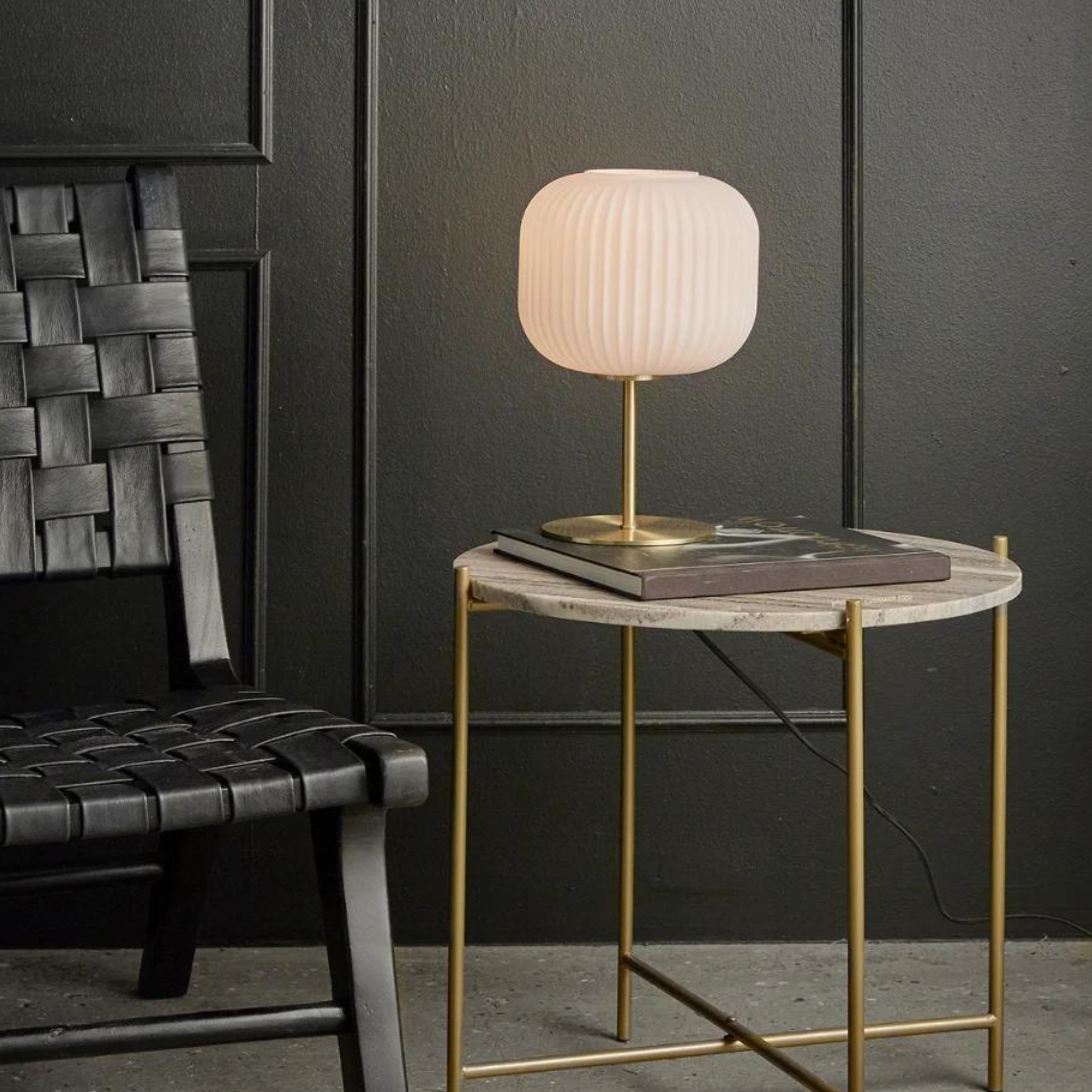 Wunderschöne, stilvolle und elegante Tischleuchte in den Farben Weiß und Gold.