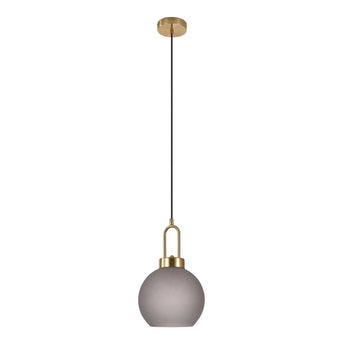 Wunderschöner Anhänger aus kugelförmigem, mattiertem Rauchglas und messingfarbenem Metall