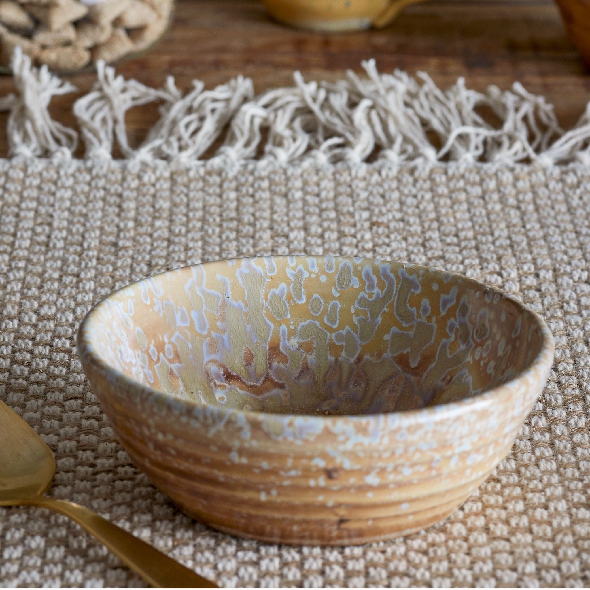 Die Milani-Schale besteht aus robustem Steingut mit einer wunderschönen, natürlichen Glasur, die für eine organische und warme Haptik sorgt. Jede Schale hat ihre eigene, einzigartige Oberfläche und ist damit ein charaktervolles Element auf dem Tisch. Die sanften Erdtöne und die leicht ungleichmäßige Struktur betonen den handgefertigten Look der Schale und verleihen ihr einen authentischen nordischen Charme.