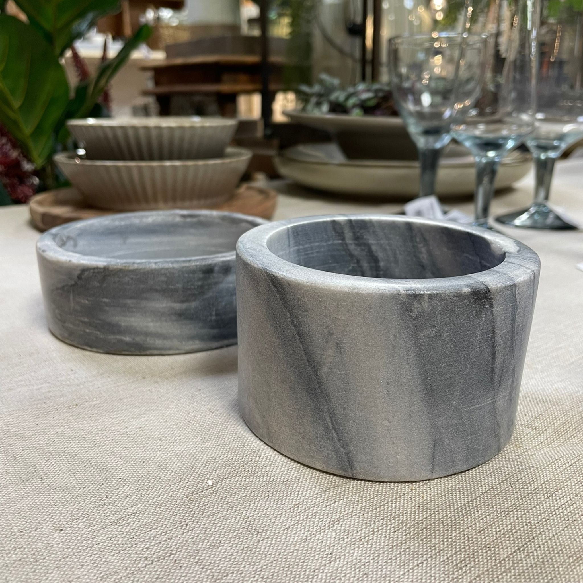Wunderschöner Halter aus grauem Marmor von Chic Antique, perfekt für eine Blockkerze oder zur kleinen Aufbewahrung.