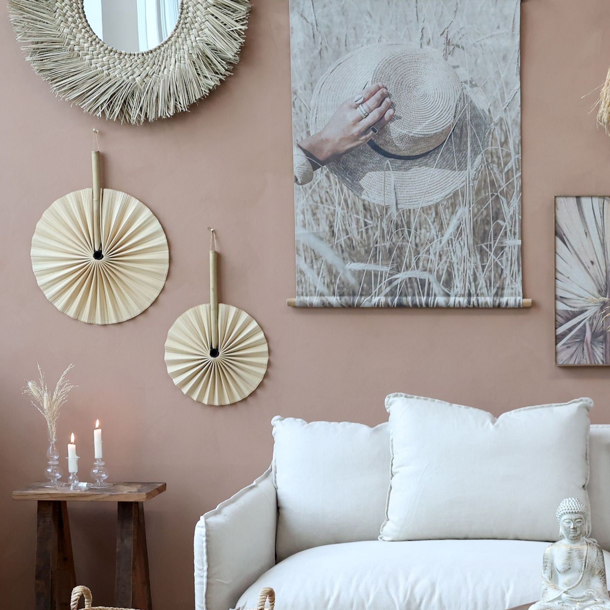 Hängen Sie den Ventilator als einzigartiges Statement-Stück an die Wand oder kombinieren Sie ihn mit anderen Wanddekorationen für einen aufregenden, vom Bohème-Stil inspirierten Look.