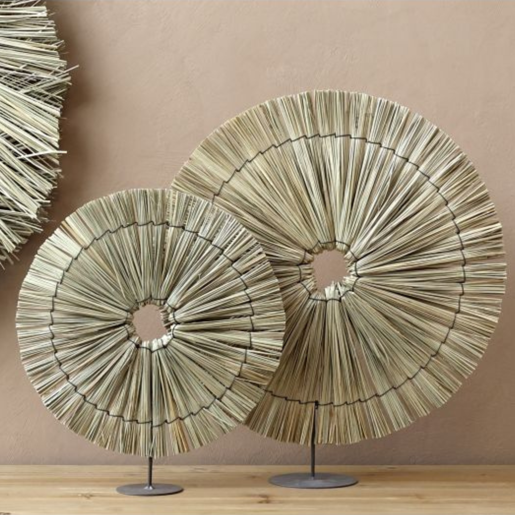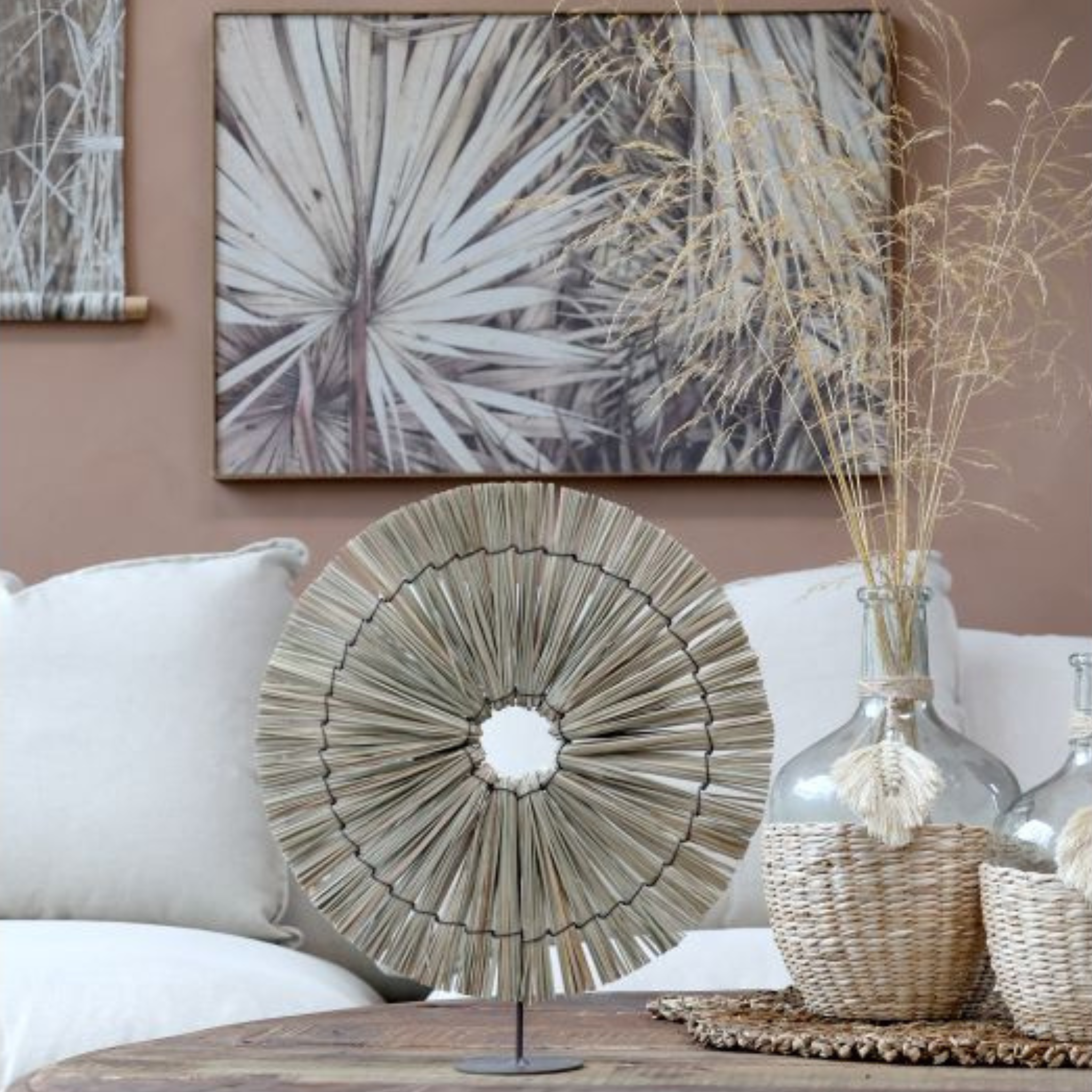 Verleihen Sie Ihrem Interieur mit diesen wunderschönen Dekorationen von Chic Antique eine natürliche und künstlerische Note. Die Dekoration ist handgefertigt aus Seegras und auf einem schlichten und stilvollen Sockel platziert, wodurch ein schöner und skulpturaler Ausdruck entsteht.