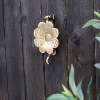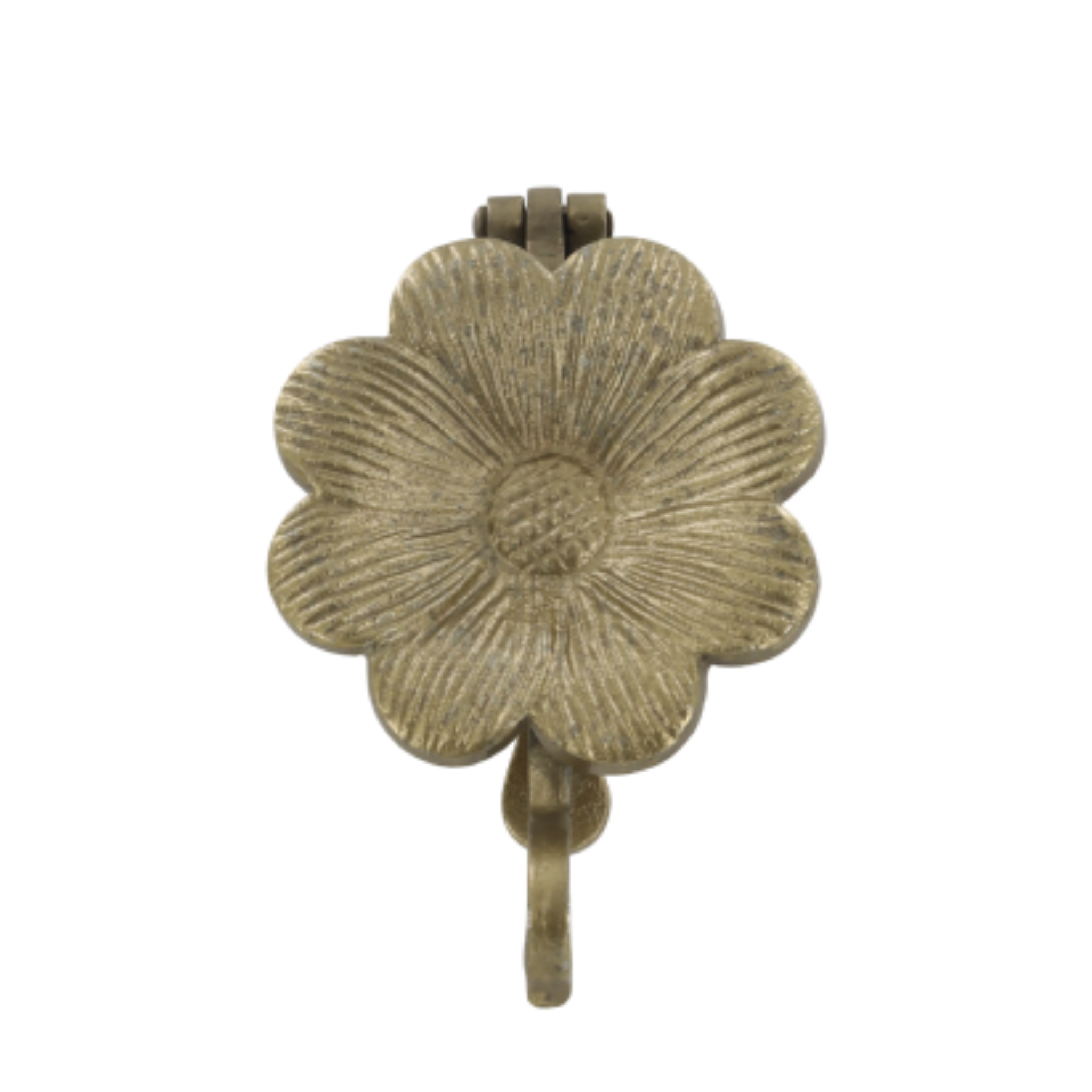 Begrüßen Sie Ihre Gäste herzlich und stilvoll mit diesem schönen Türklopfer in Blumenform. Der Türklopfer ist aus Eisen in einer schönen antiken Messingfarbe gefertigt. Der Türklopfer vereint Funktionalität mit dekorativer Eleganz.