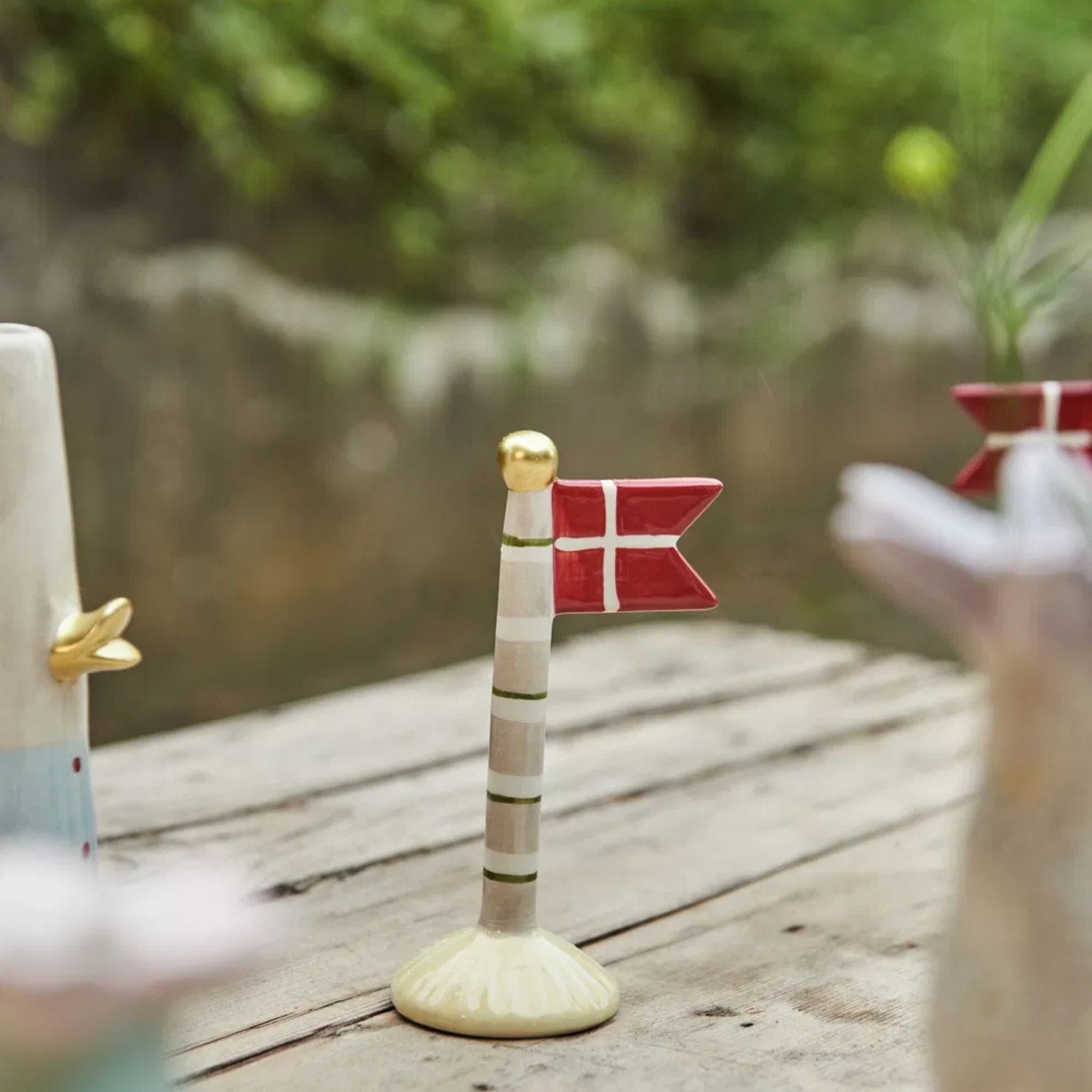 Feiern Sie dänische Traditionen mit einem eleganten Keramikfahnenmast mit dem Dannebrog, der in drei Varianten erhältlich ist und Ihrem Zuhause eine stilvolle und festliche Note verleiht.