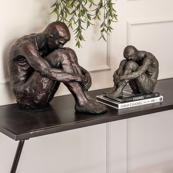 Großer sitzender Mann in Mattschwarz. Dekorieren Sie Ihr Zuhause mit diesem Mann. Kann problemlos auf dem Boden oder auf einem Regal stehen. Stilvoller und gutaussehender Mann!