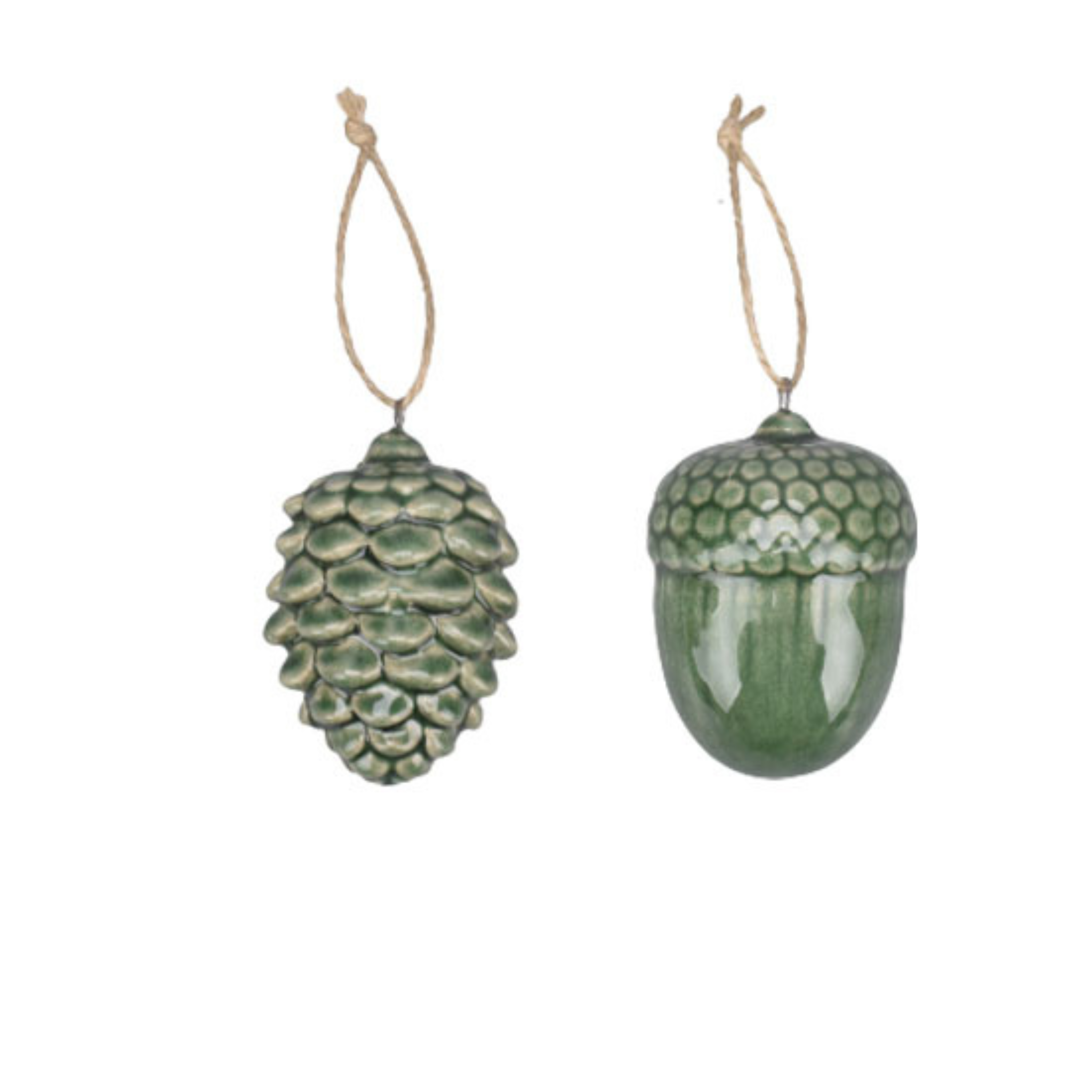 Süße, dekorative und exklusive Keramikzapfen/Eicheln in verschiedenen gedeckten Farben.