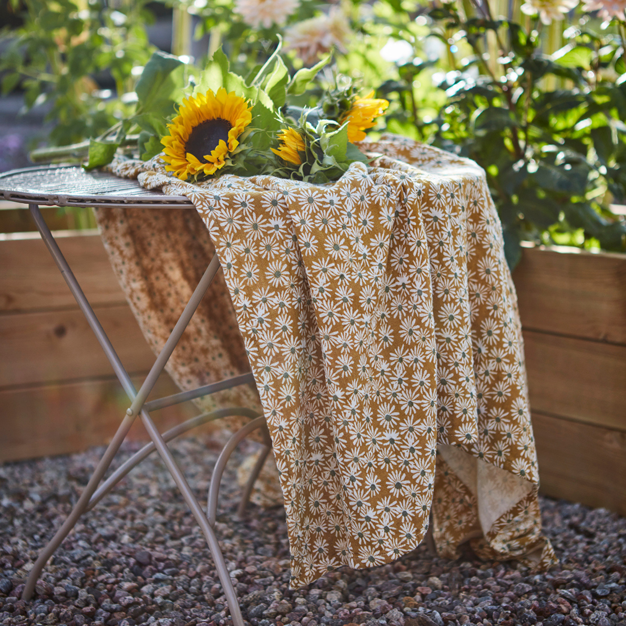 Decken Sie den Tisch mit dieser wunderschönen Tischdecke mit Blumenmuster und schaffen Sie eine gemütliche Atmosphäre aus Sonne und Wärme am Tisch.