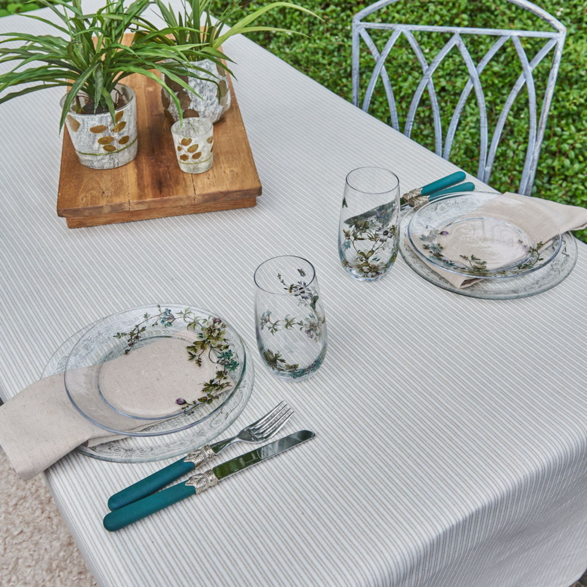 Diese elegante Baumwolltischdecke mit schmalen Streifen schafft eine zeitlose und stilvolle Atmosphäre in Ihrem Zuhause. Das schlichte Design eignet sich sowohl für den Alltag als auch für Partys und verleiht Ihrem Tisch eine leichte und einladende Ausstrahlung.