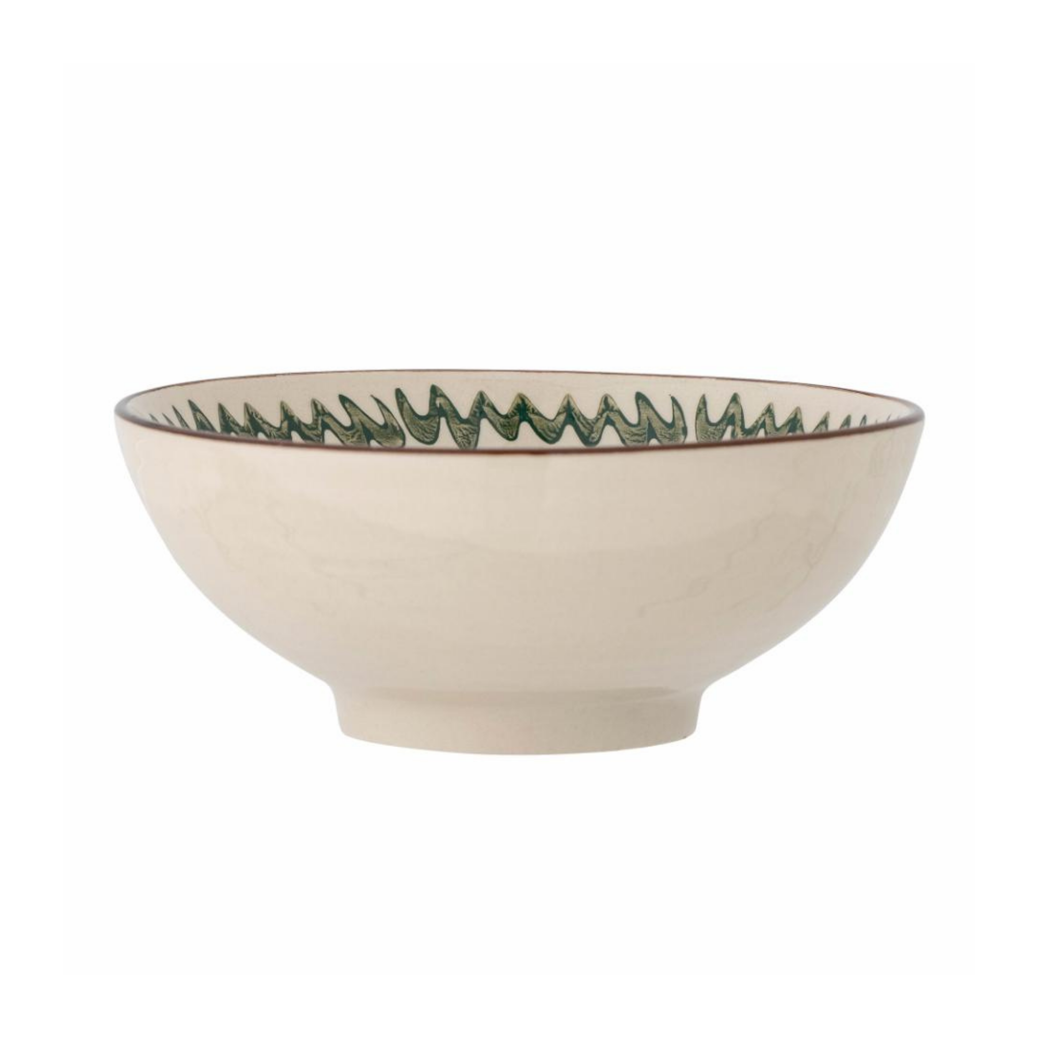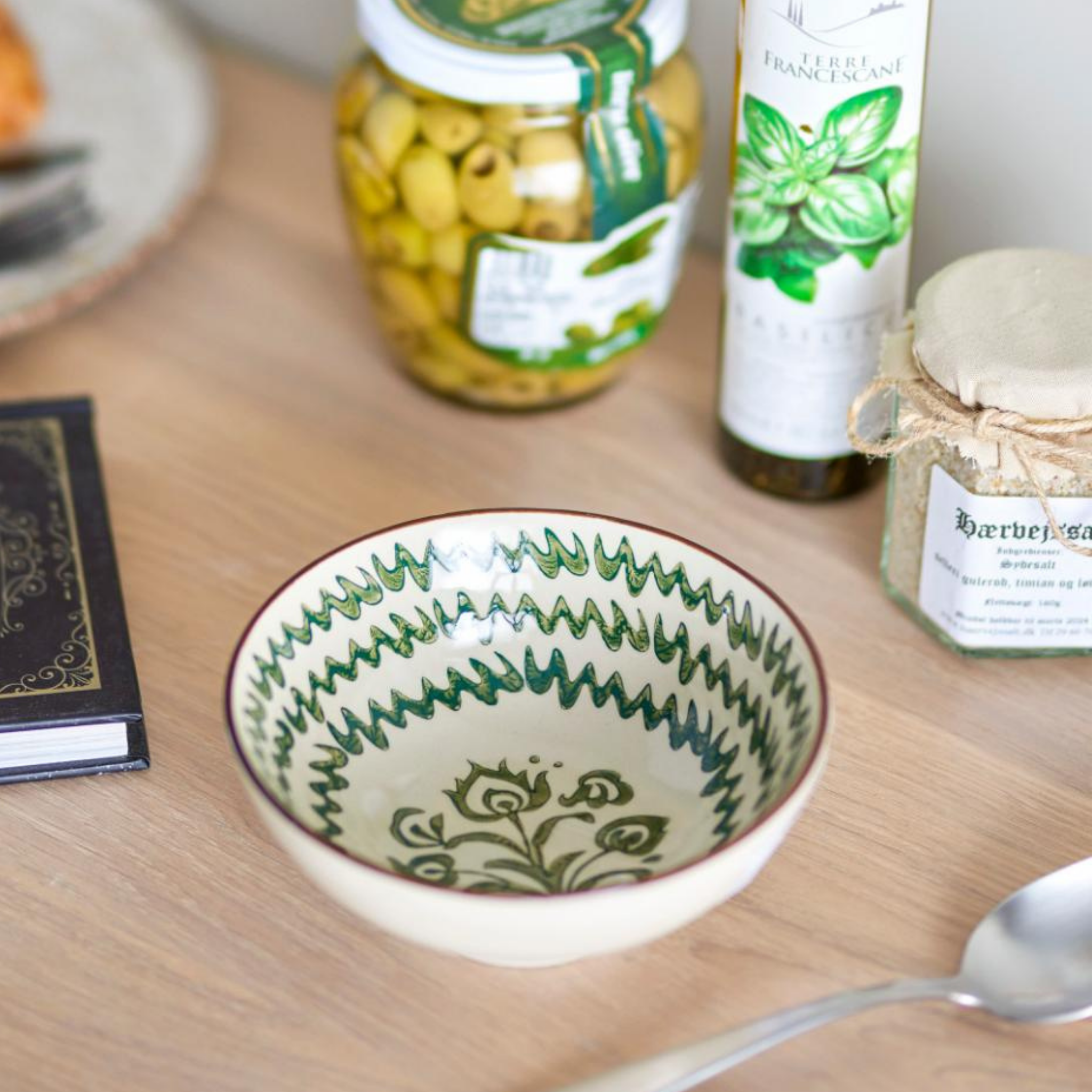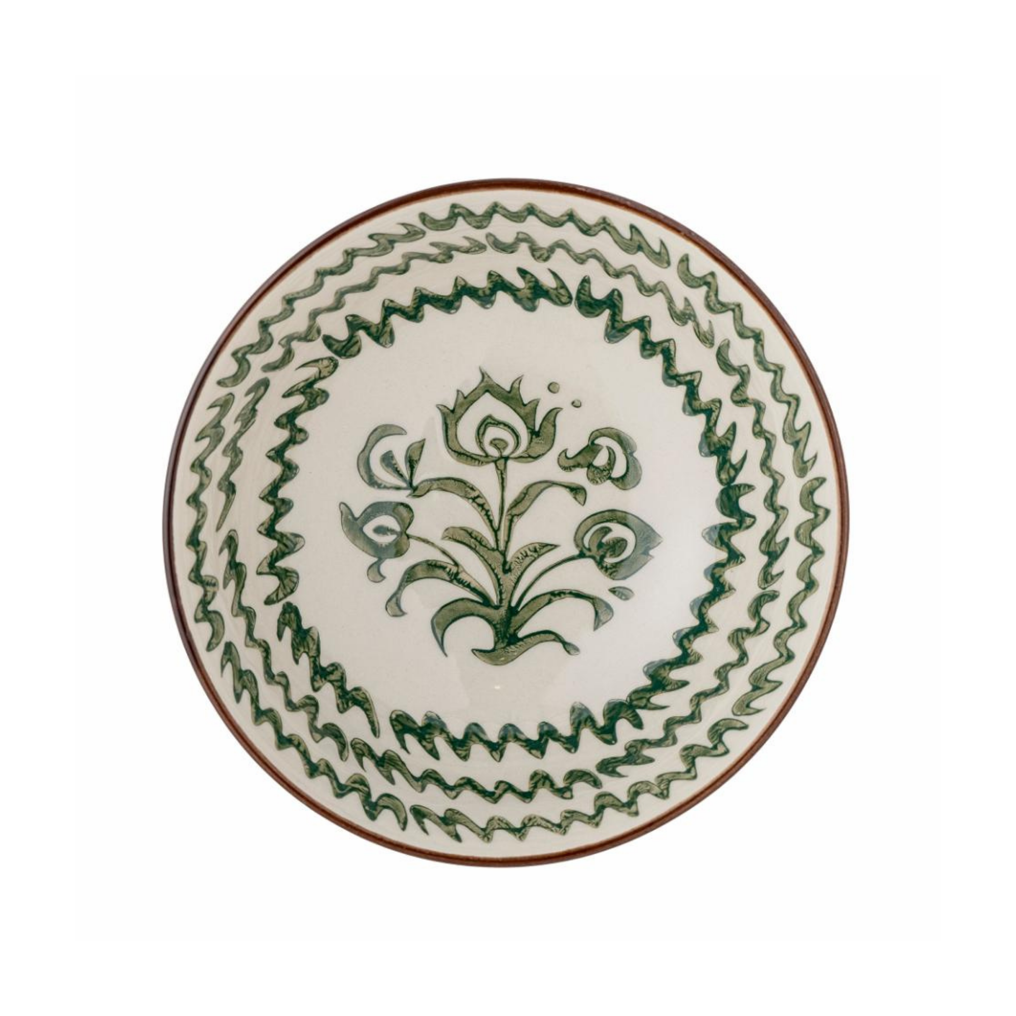 Die Heikki-Schale von Bloomingville ist mit ihrem atemberaubenden, handgemalten Muster in wunderschönen Grüntönen ein Must-Have für Ihren Esstisch.