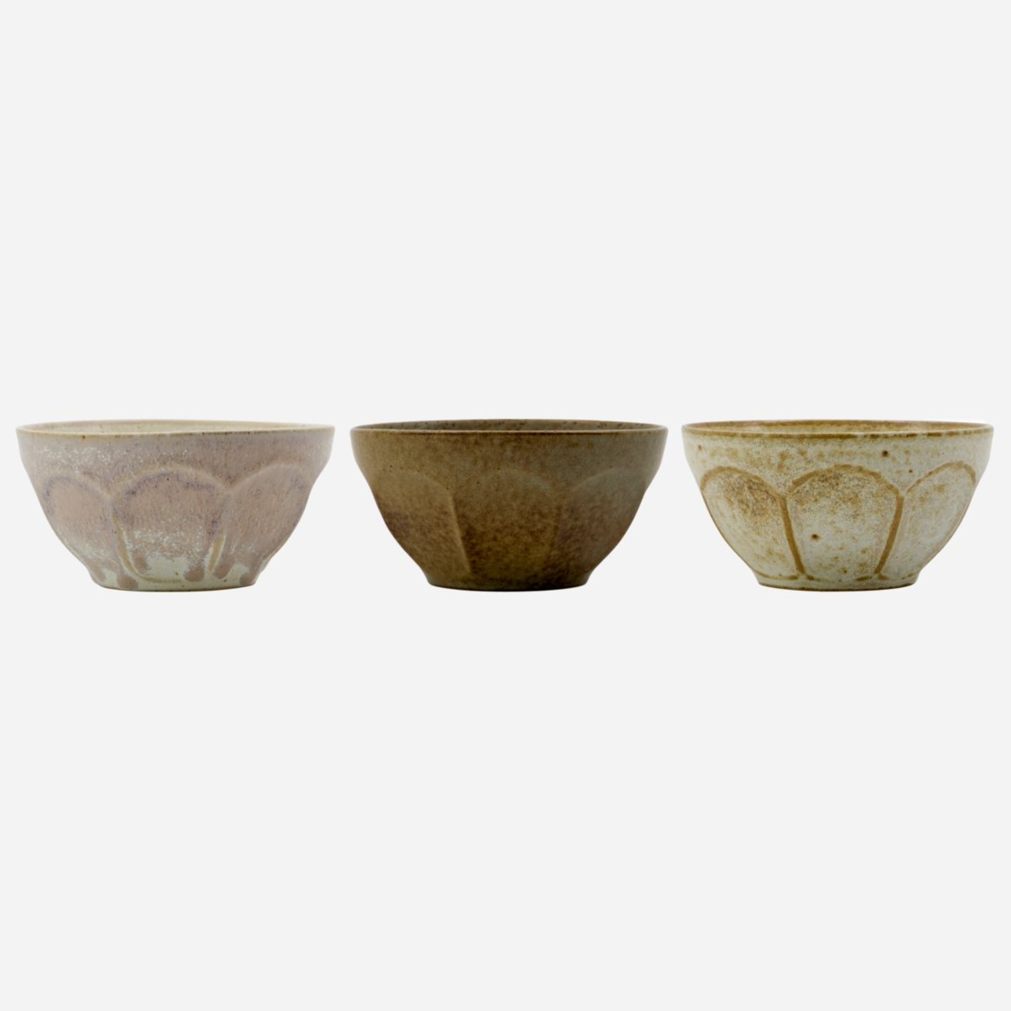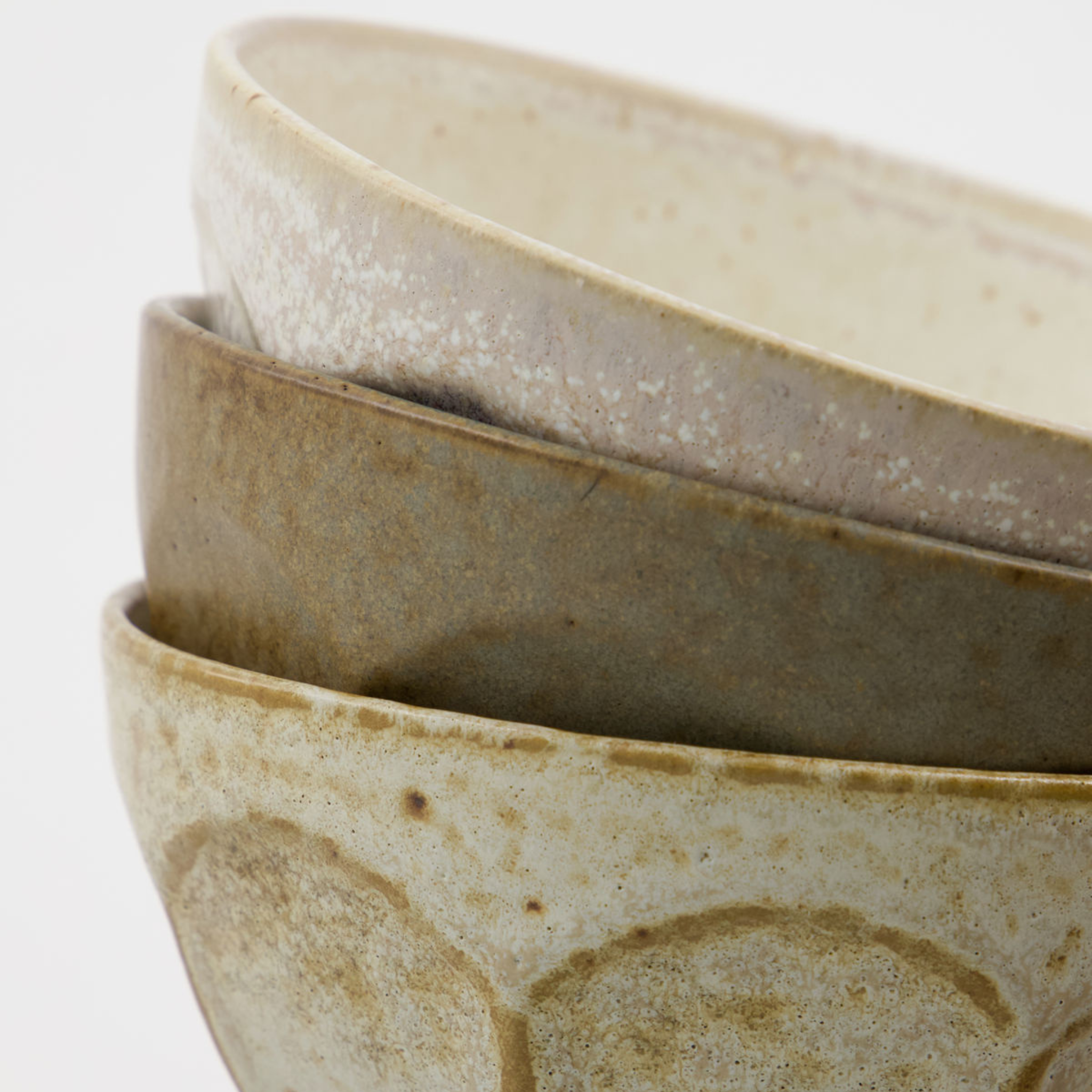Jede Schale ist handgefertigt aus Steinzeug und verfügt über einzigartige Designvarianten, die den Charme verstärken. Es ist in gebrochenem Weiß, Beige und Grün erhältlich und bildet eine raffinierte Farbpalette für Ihre Tischdekoration.