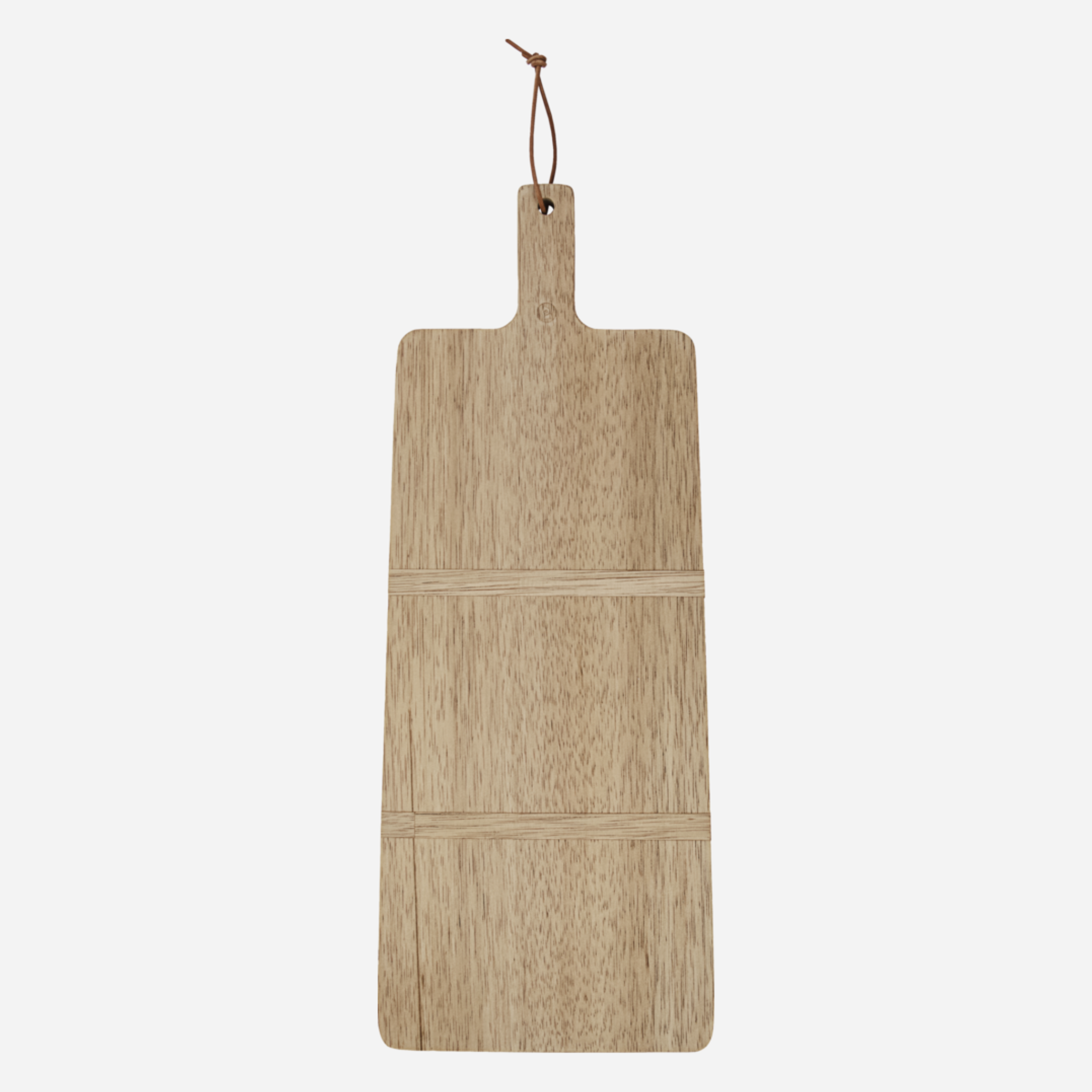 Zwei Einsätze sorgen für den letzten Schliff und verhindern, dass sich das Schneidebrett verbiegt. Die Länge des Bretts und der Griff laden dazu ein, es als Servierplatte für Tapas oder Snacks zu verwenden, wenn Sie Gäste haben.
