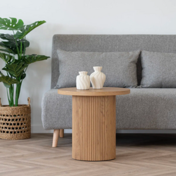 Verleihen Sie mit diesem Ecktisch in wunderschöner Naturoptik einen Hauch natürlicher Eleganz. Der Tisch ist aus massivem MDF gefertigt und mit Dekorpapier überzogen, was ihm eine realistische Holzoptik verleiht, die perfekt zu einer hellen und modernen Inneneinrichtung passt. Durch sein schlichtes Design eignet er sich zum Füllen kleiner Ecken oder als dezenter Beistelltisch im Wohnzimmer, Schlafzimmer oder Flur. Das praktische Format ermöglicht die Präsentation von Dekorationen, Pflanzen oder die griffbereite Aufbewahrung Ihrer Alltagsgegenstände.