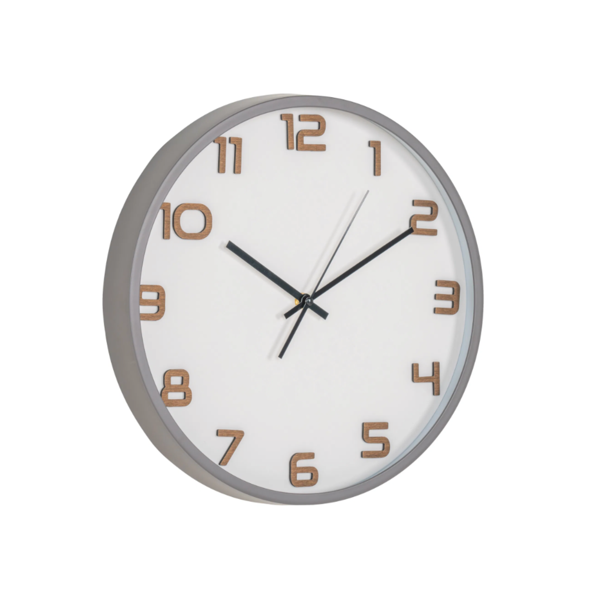 Diese elegante Wanduhr vereint modernen Minimalismus mit natürlichen Elementen. Die Uhr verfügt über einen stilvollen grauen Rahmen, der die Zahlen in einer schönen Holzfarbe umrahmt und so einen harmonischen Kontrast schafft. Die Uhr besteht aus robustem Kunststoff und Glas, was für eine leichte und robuste Konstruktion sorgt, die sich perfekt in jede Einrichtung einfügt. Das klare Design erleichtert das Ablesen der Uhrzeit, während die schlichte Ästhetik sowohl moderne als auch klassische Häuser ergänzt.