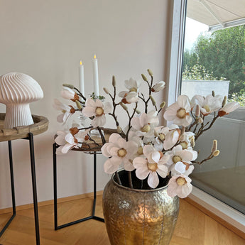 Der künstliche Magnolienzweig von LaVida verfügt über fünf wunderschöne weiße oder zartrosa Blüten, die für eine elegante und naturgetreue Optik sorgen.