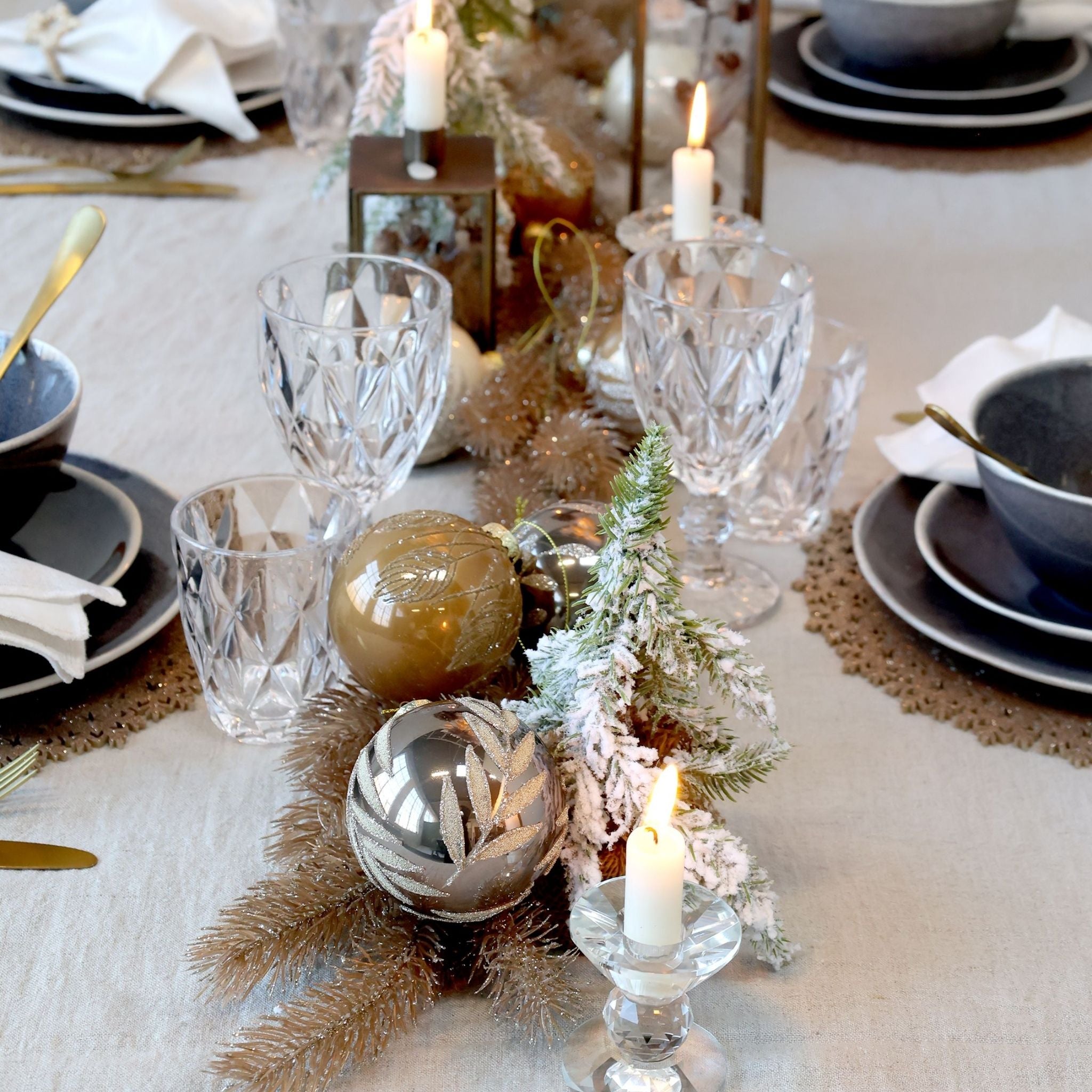 Wunderschöne champagnerfarbene Tannengirlande mit Glitzer von Chic Antique. Verleihen Sie dem Dezember mit dieser Tannengirlande etwas zusätzlichen Glitzer und verwenden Sie sie als Tischdekoration oder andere Weihnachtsdekoration.