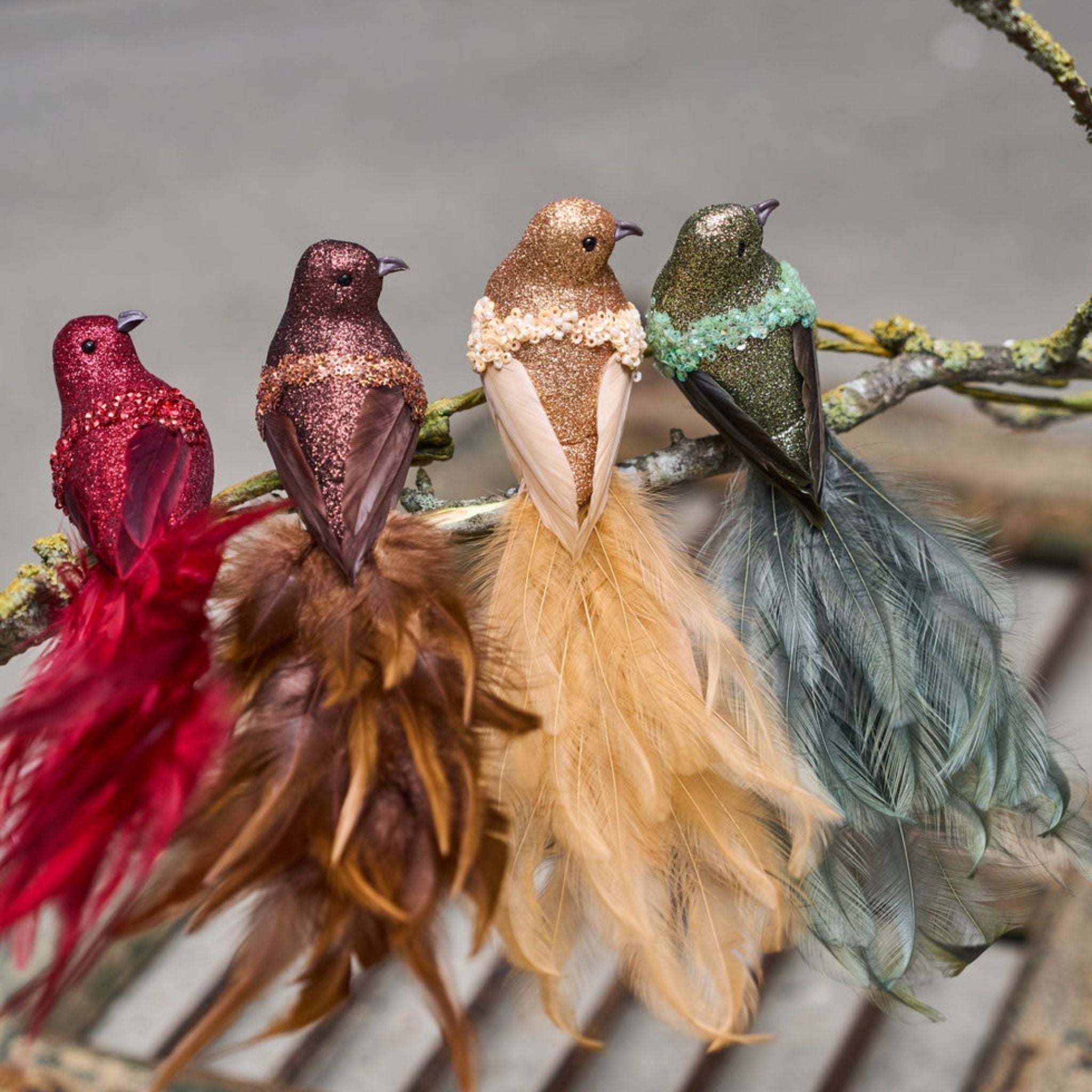 Mit dem dezenten Clip an der Unterseite lässt sich der Vogel genau dort befestigen, wo Sie ihn haben möchten – an einem Ast, einem Zweig, einem Geschenk oder als Dekoration am Weihnachtsbaum.