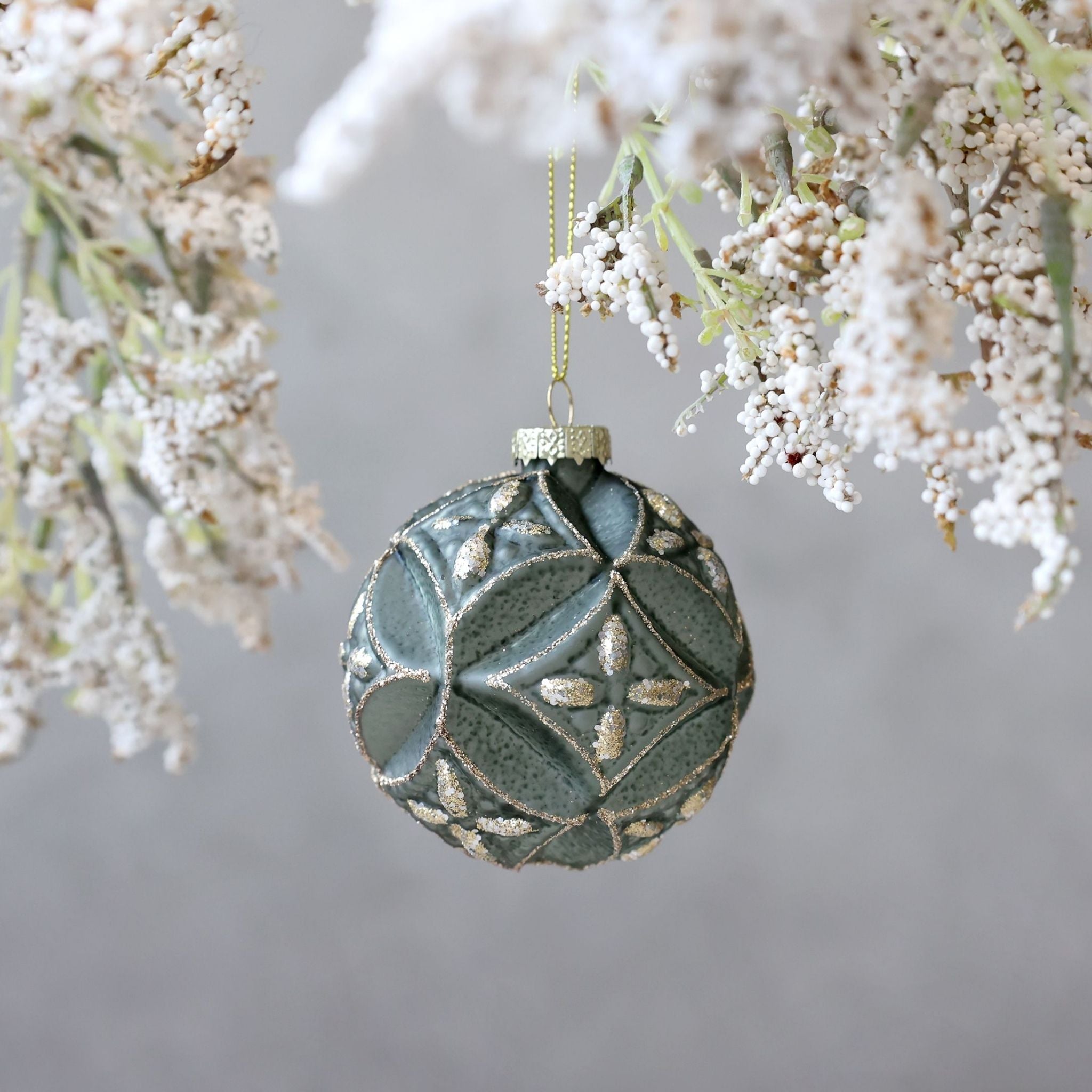 Weihnachtskugel mit Glitzer Ø8 cm Moos - Chic Antique