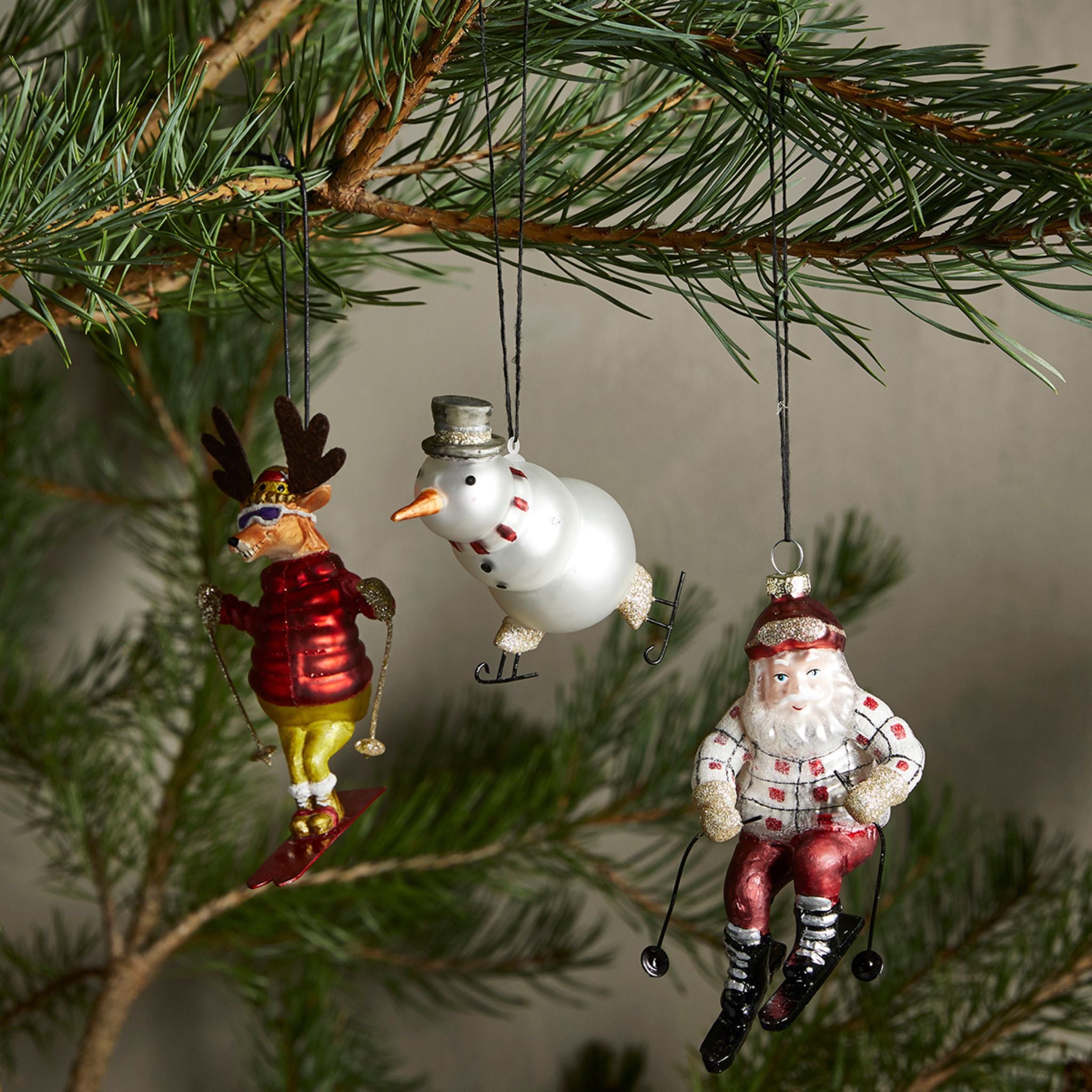 Die Weihnachtskugel mit dem eislaufenden Schneemann ist ein festliches und gemütliches Detail für den Weihnachtsbaum. Die schöne Kugel verbindet klassische Weihnachtsstimmung mit einem verspielten Ausdruck, der Freude im Haus verbreitet.