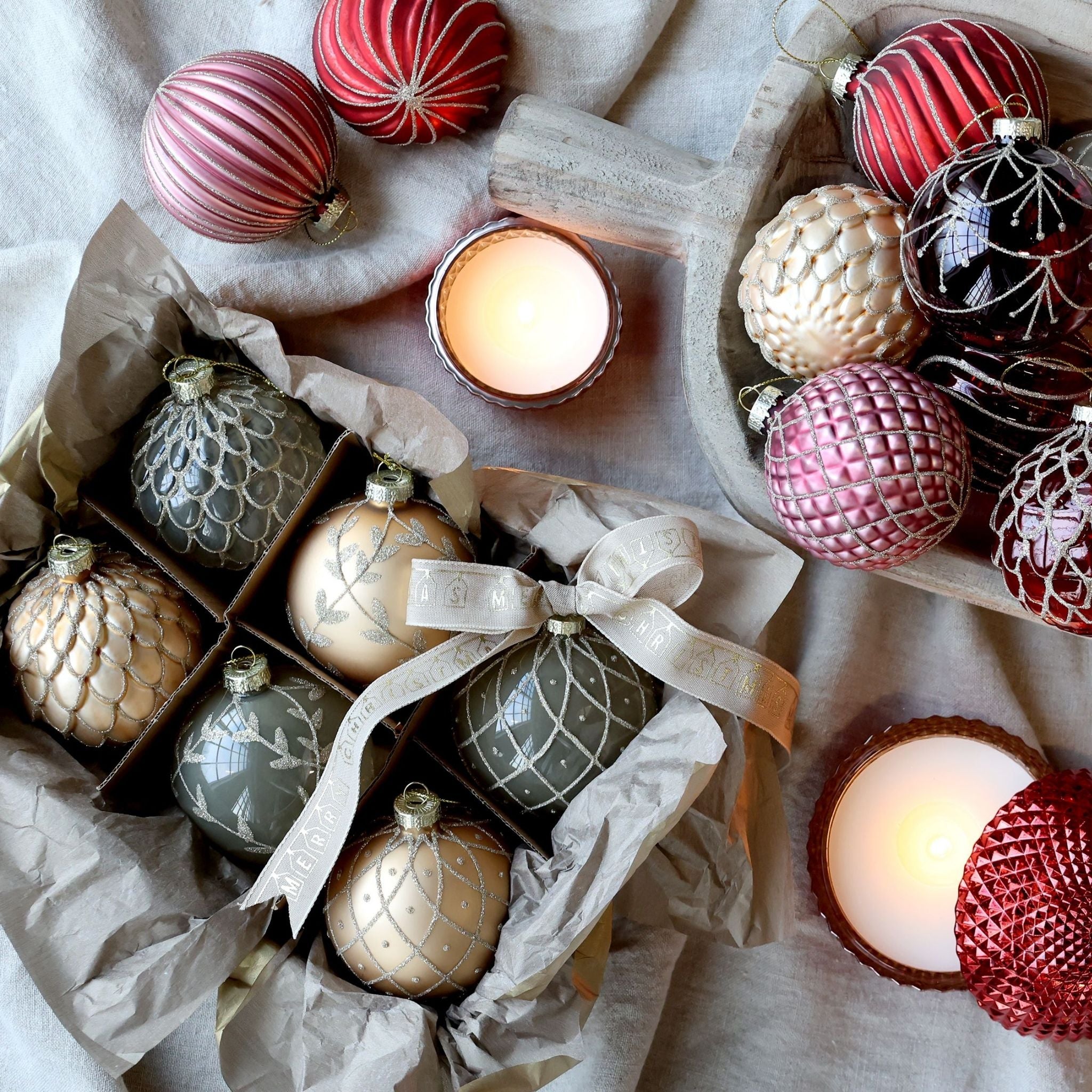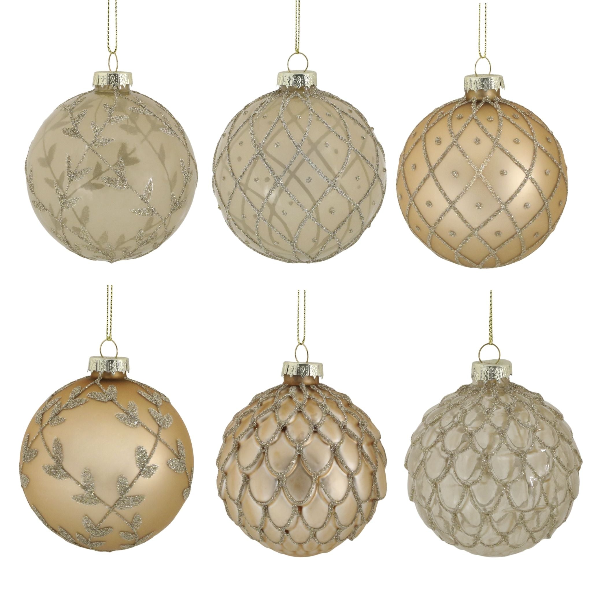 Weihnachtskugeln champagnerfarben in Box, 6er-Set - Chic Antique