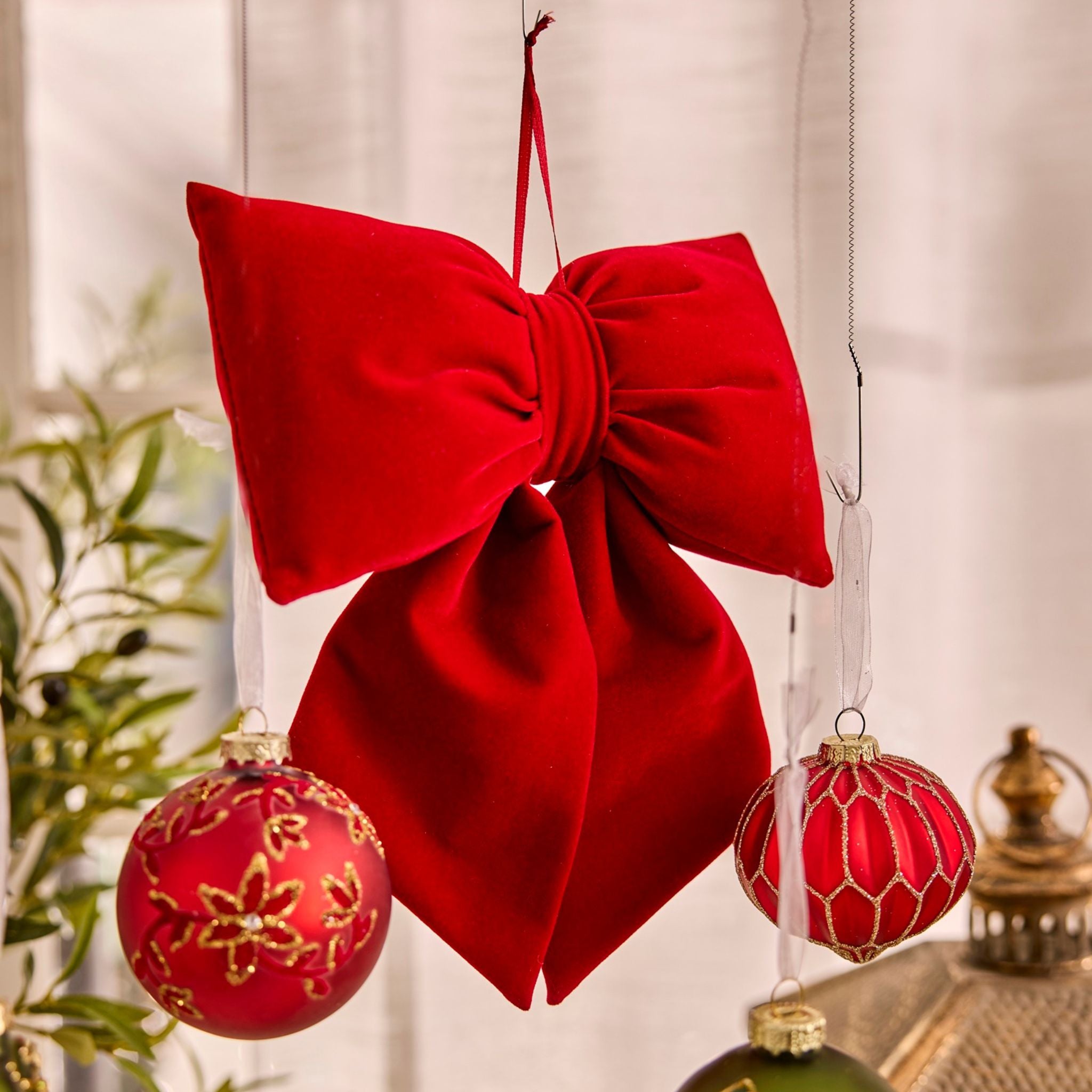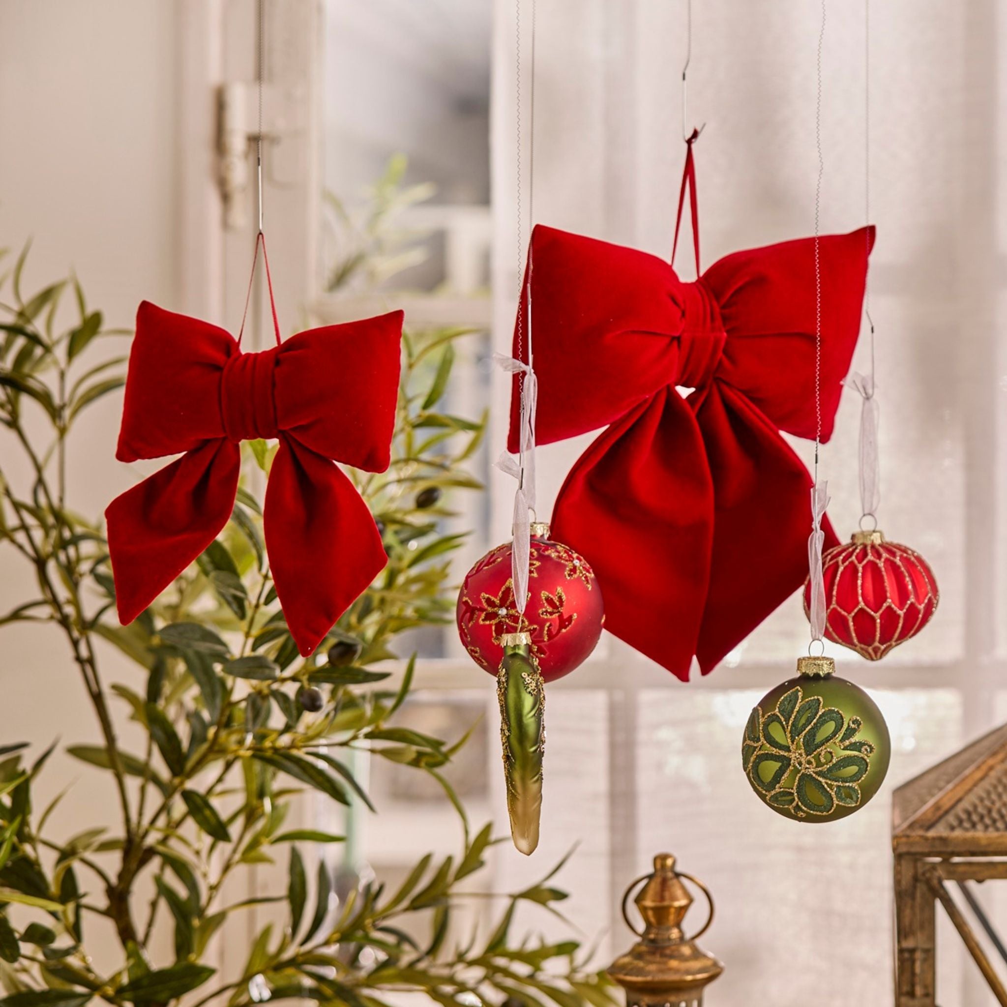Der weiche Velours fängt das Licht wunderschön ein und verleiht einen exklusiven Look, der zu Weihnachten, besonderen Anlässen und alltäglicher Freude passt. Die Schleife ist in zwei Größen erhältlich, sodass Sie leicht diejenige finden können, die Ihren Bedürfnissen am besten entspricht – sei es zum Verzieren eines Türkranzes, eines Geschenks oder als dekoratives Detail im Innenraum.