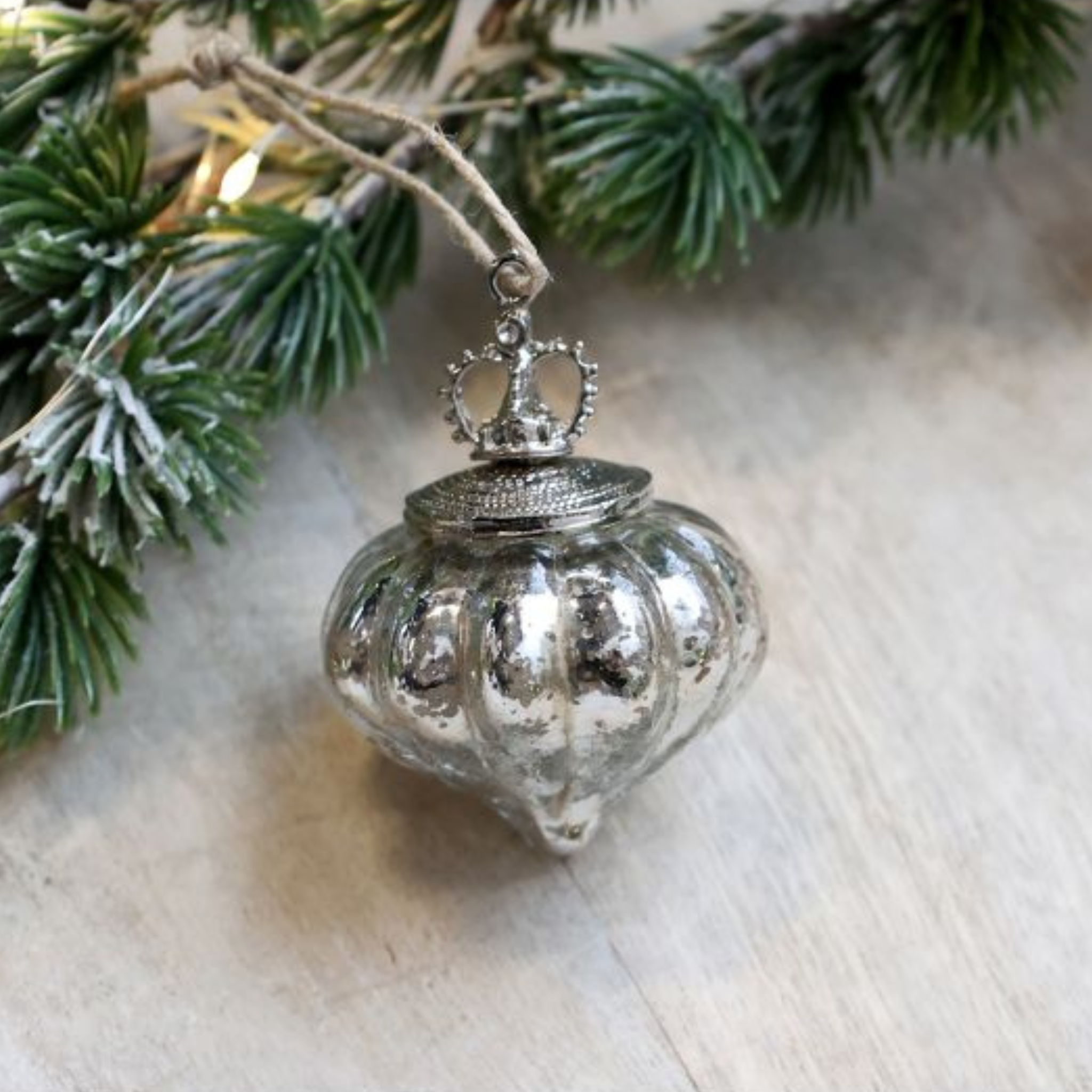 Erleben Sie den Zauber von Weihnachten mit unserer eleganten Weihnachtskugel „Dråbe“ zum Aufhängen. Diese exklusive Weihnachtskugel wurde sorgfältig aus Glas und Eisen gefertigt und verfügt über ein bezauberndes antikes Silberfinish, das Ihrem Weihnachtsbaum einen Hauch von Vintage-Eleganz verleiht. Verziert mit einer dekorativen Oberseite und wunderschönen Simili-Details fängt diese einzigartige Weihnachtskugel das Licht auf die schönste Art und Weise ein und erzeugt einen funkelnden Effekt, der jeden, der sie sieht, begeistern wird.