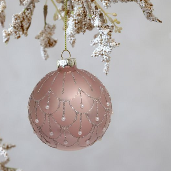 Schaffen Sie eine zauberhafte Weihnachtsatmosphäre mit unserer wunderschönen rosa Weihnachtskugel aus Glas, verziert mit einem Hauch von Glitzer und zarten Perlen. Diese Weihnachtskugel ist eine perfekte Mischung aus Eleganz und festlichem Charme und verleiht Ihrem Weihnachtsbaum einen romantischen Glanz.