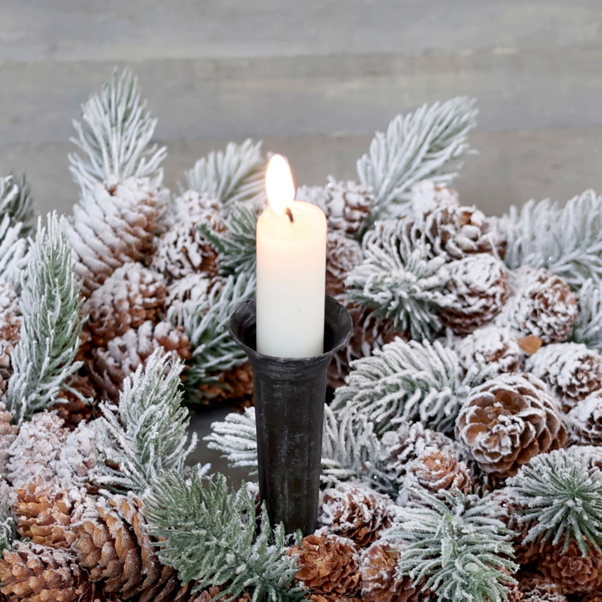 Skab stemningsfulde dekorationer med disse fine lysholdere med spyd. Perfekt til julens mange kreative arrangementer og dekorationer. Brug den i adventskransen eller andre blomsteropsatser. Spyddet gør, at du nemt kan placere lysholderen i jord eller ler.