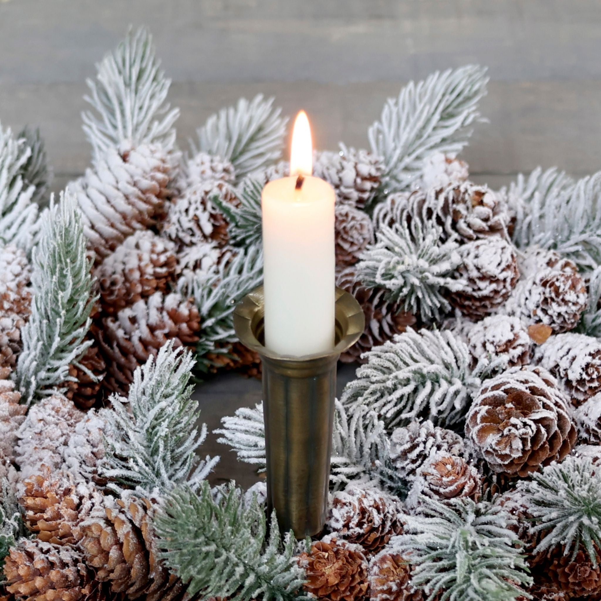 Lysholderen passer både til bedelys og kronelys og fås i to smukke varianter: antique sort og antique messing.
