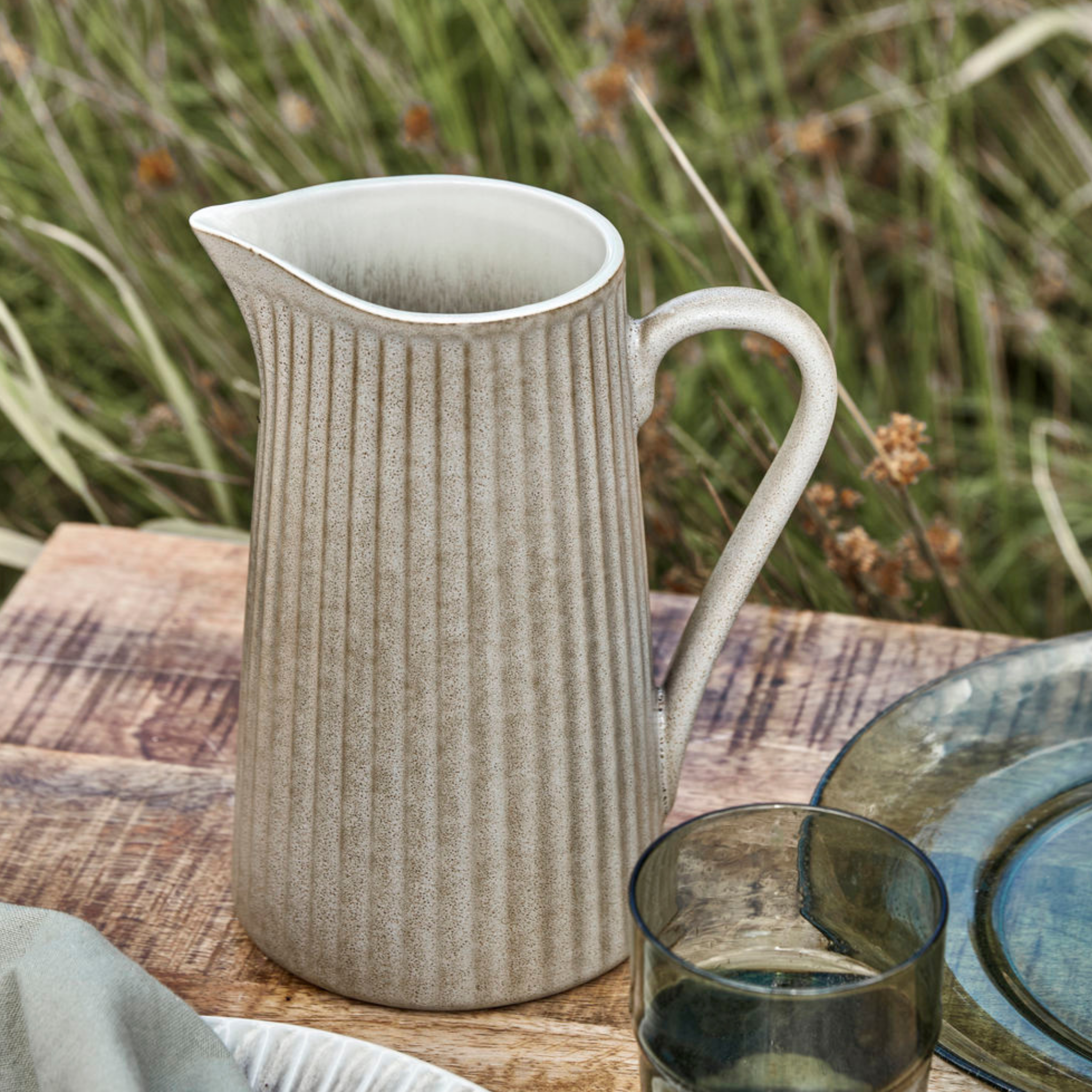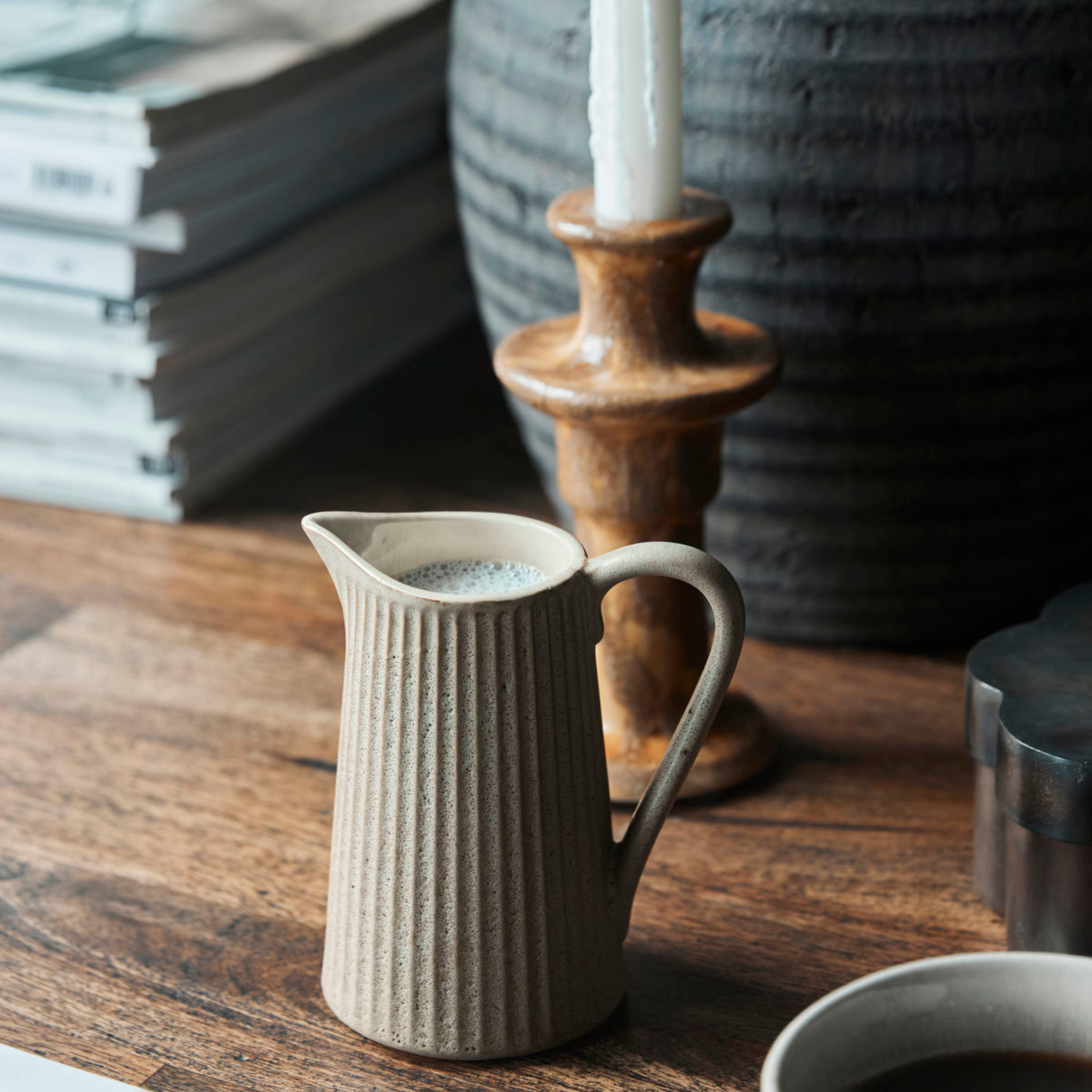 Diese Krüge von House Doctor haben ein zeitloses und entspanntes, aber dennoch elegantes Design mit einer geriffelten Oberfläche. Das Design ist außen matt und innen glänzend und die Kannen sind ein dezentes Detail auf Ihrem Tisch – vor allem, wenn Sie sie mit einem schlichten Alltagsgestell kombinieren. Durch das zeitlose Design eignet sich die Kanne für alles, vom Nachmittagskaffee bis zum Servieren der Soße beim Abendessen.
