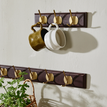 Wer unterschiedliche Farben und Materialien bevorzugt, kann Messing mit Holz – oder Leder in verschiedenen Farben – kombinieren. Mit einer Garderobe oder verschiedenen Haken lässt sich so ein schöner Effekt an der Wand erzielen, der nicht nur praktisch, sondern auch optisch ein Hingucker ist.