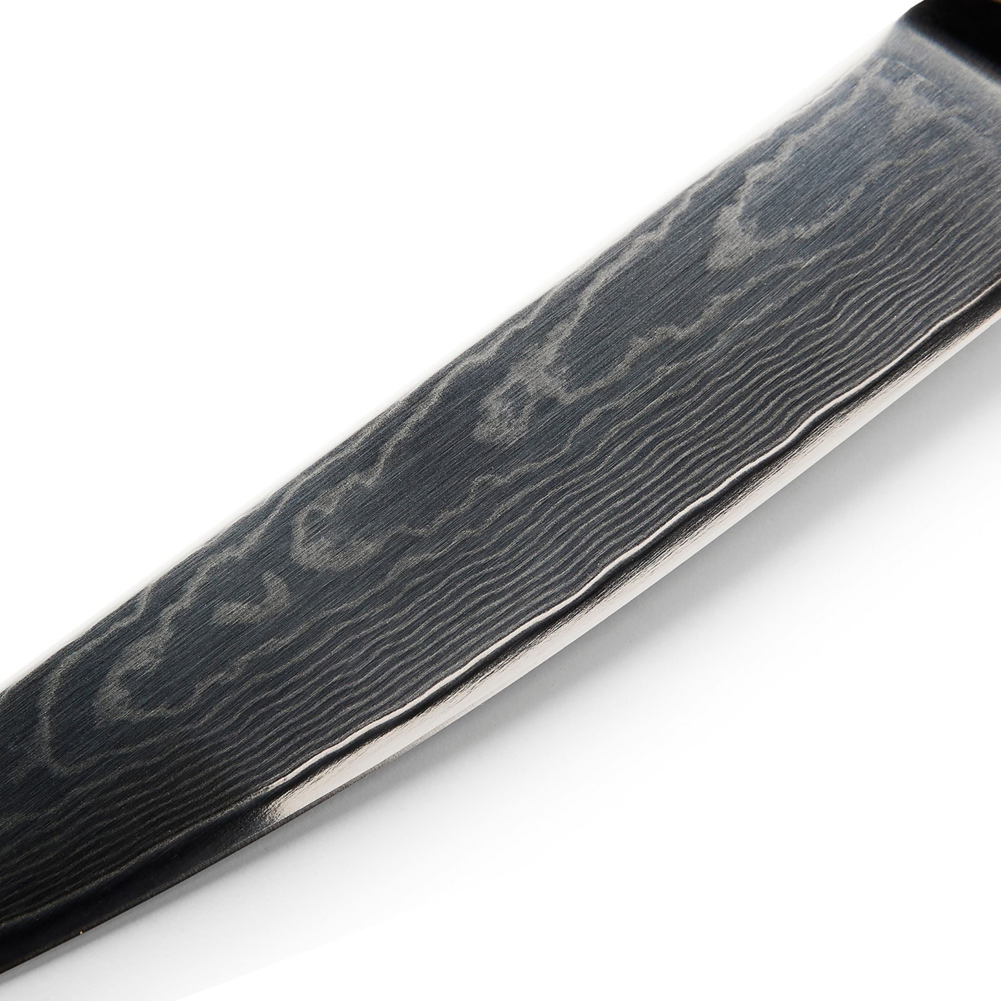 Diese Küchenmesser sind aus Damaszenerstahl gefertigt, der den Messern sowohl Robustheit als auch Schärfe verleiht.