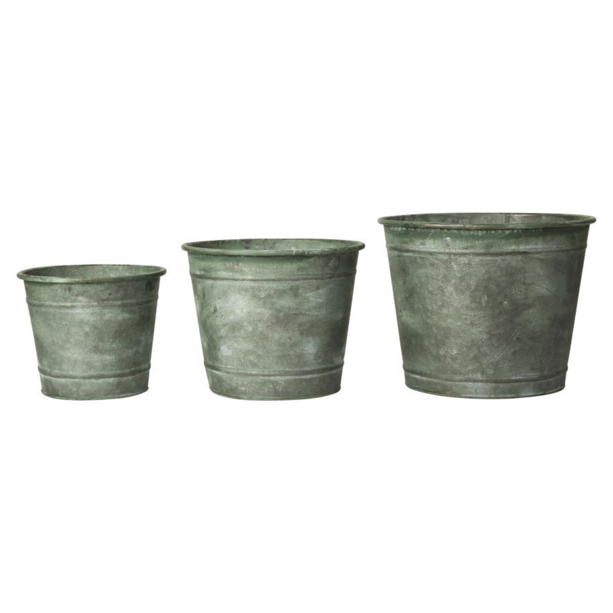 Schönes Zinkgefäß-Set mit drei Größen in einem schönen antiken Grün. Schaffen Sie mit diesen schönen grünen Zinkgefäßen Ihre eigene gemütliche Ecke im Garten, auf der Terrasse, im Gartenhaus oder im Wintergarten.