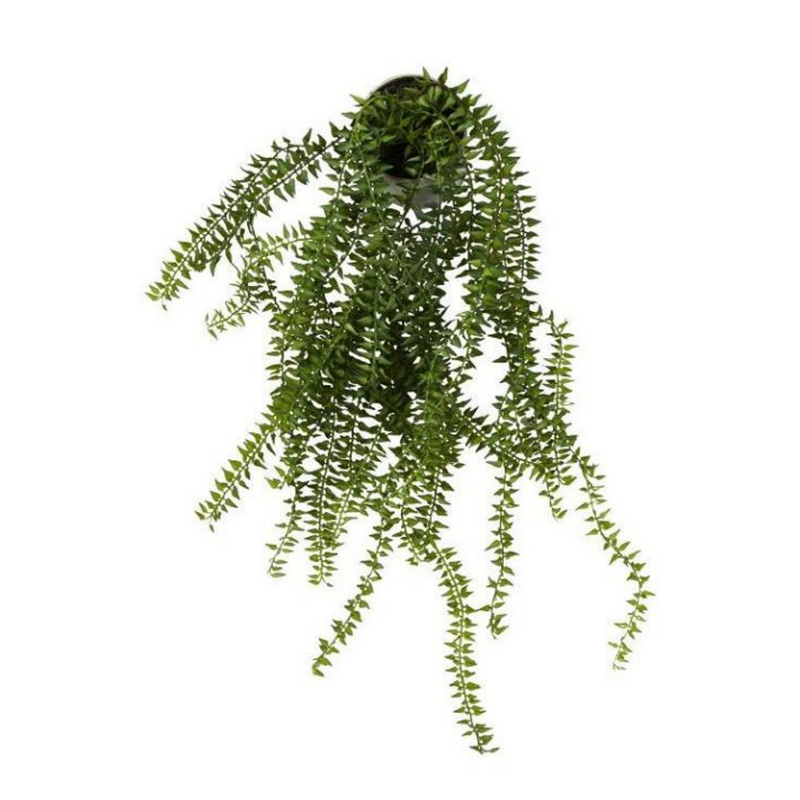 Wunderschöne und naturgetreue künstliche Hängepflanze. Diese Art von Pflanze sieht besonders schön aus, wenn sie auf etwas höheren Möbeln platziert wird, sodass sie schön über die Seiten fällt.