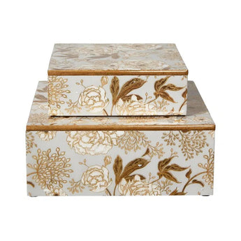 Æskesæt med smukt blomster mønster, i flot lyseblå, hvid og guld farvemix.
