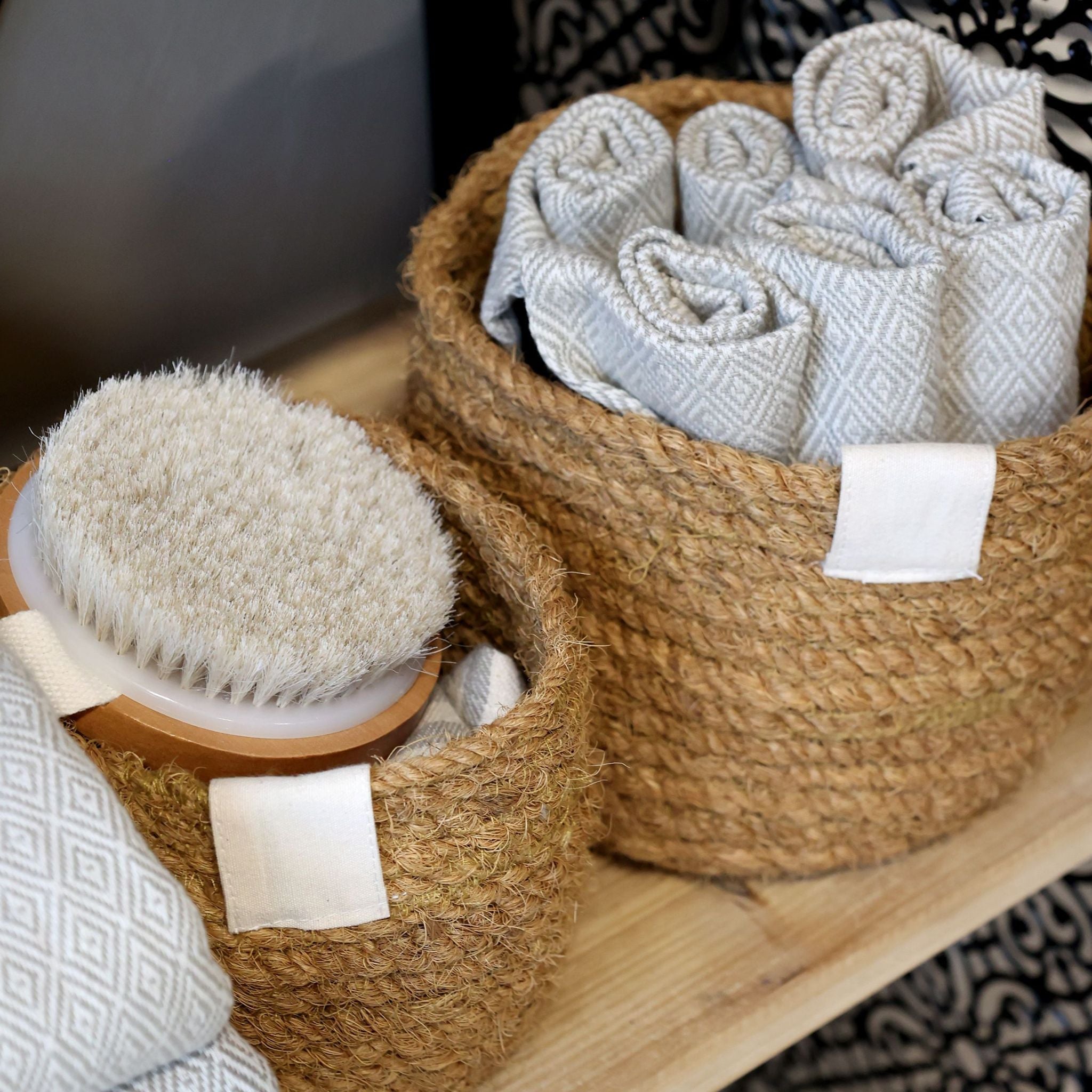 Kombinieren Sie Funktionalität mit dekorativem Charme mit diesen edlen Weidenkörben von Chic Antique. Perfekt, um stilvoll Ordnung zu schaffen. Verwenden Sie sie zur Aufbewahrung kleiner Handtücher im Badezimmer oder schmücken Sie Ihre Küche mit frischen Kräutern und Grünpflanzen.