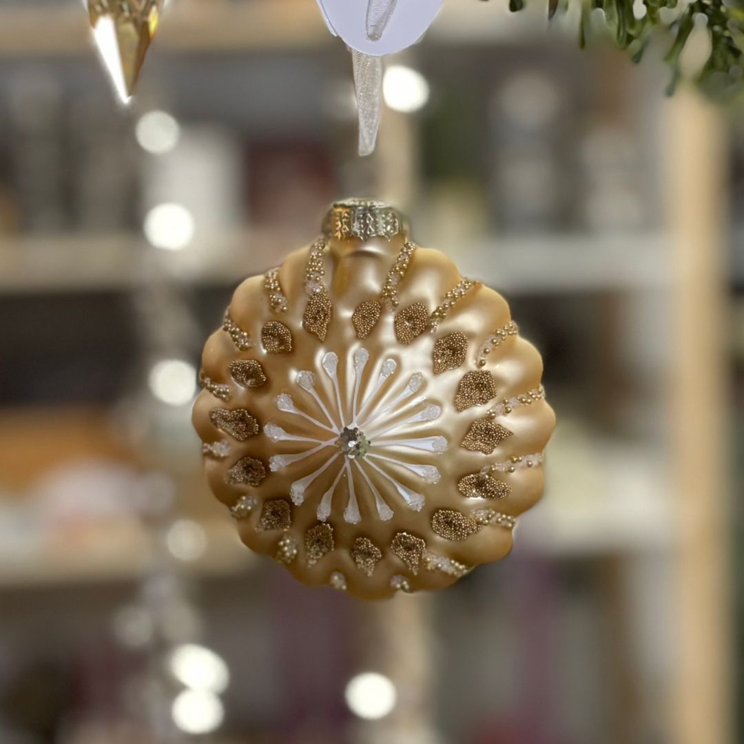 Dekorieren Sie weihnachtlich mit dieser schönen flachen Weihnachtskugel und schaffen Sie die gemütlichste Atmosphäre in Ihrem Zuhause.