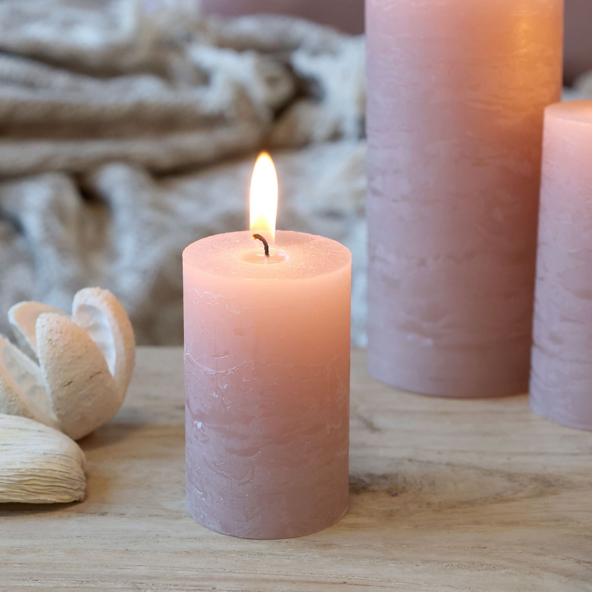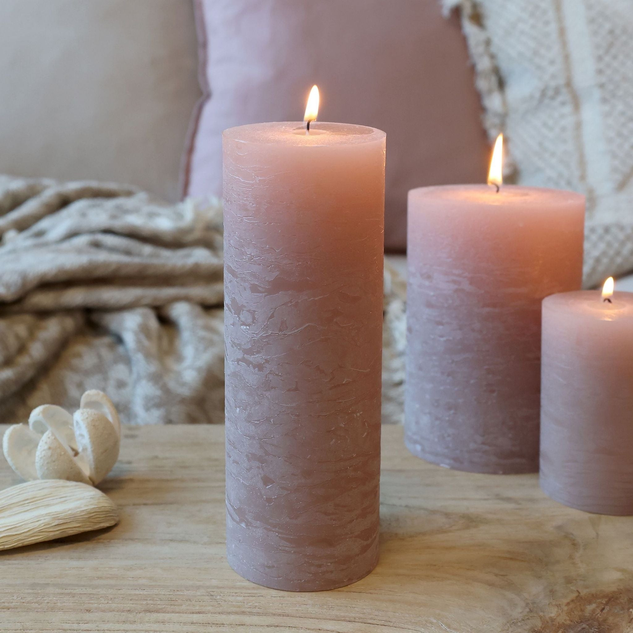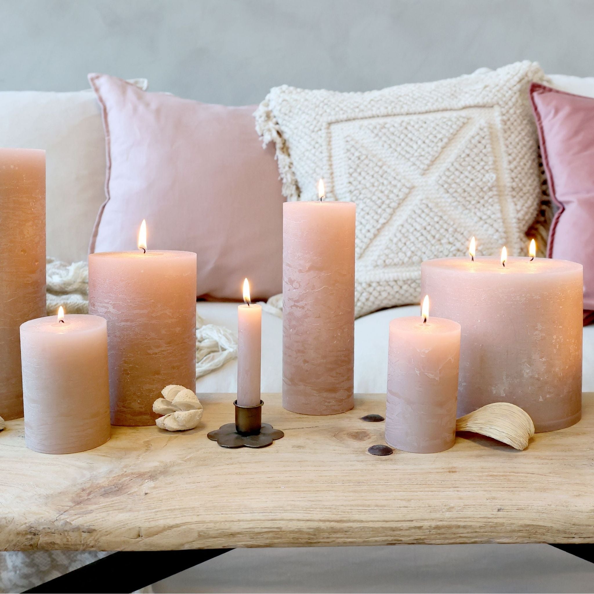 Wunderschöne, dekorative und rustikale Blockkerzen in einem schönen Rosaton von Chic Antique.