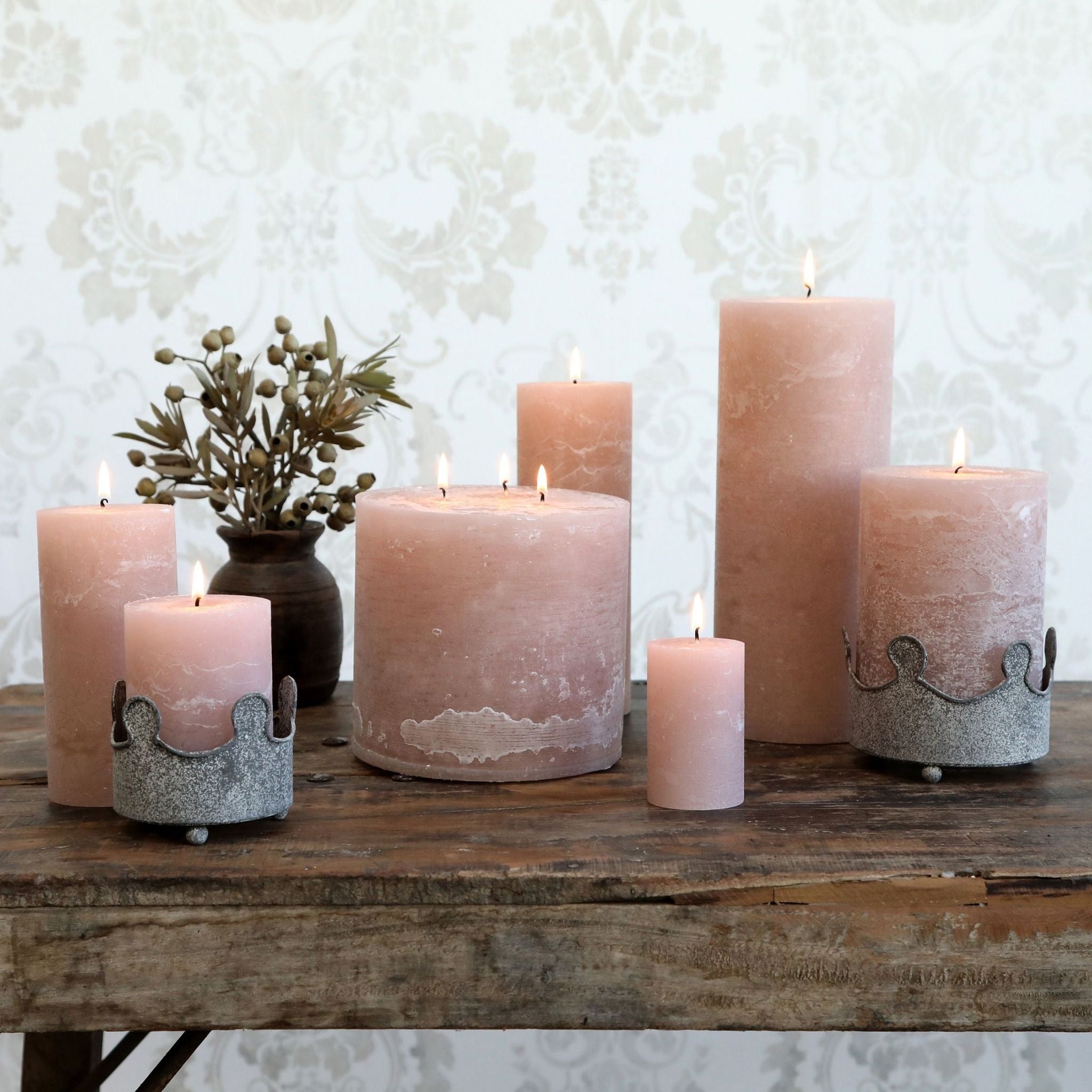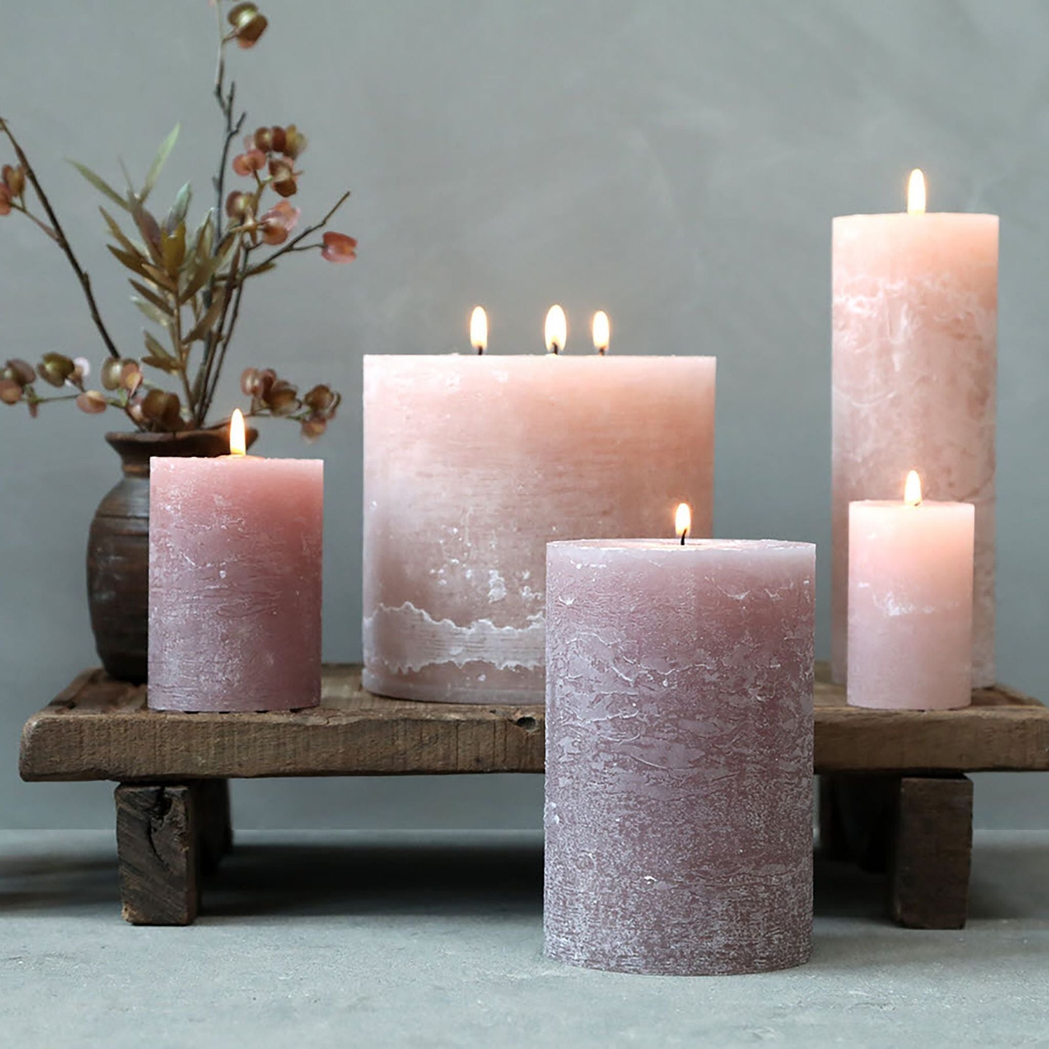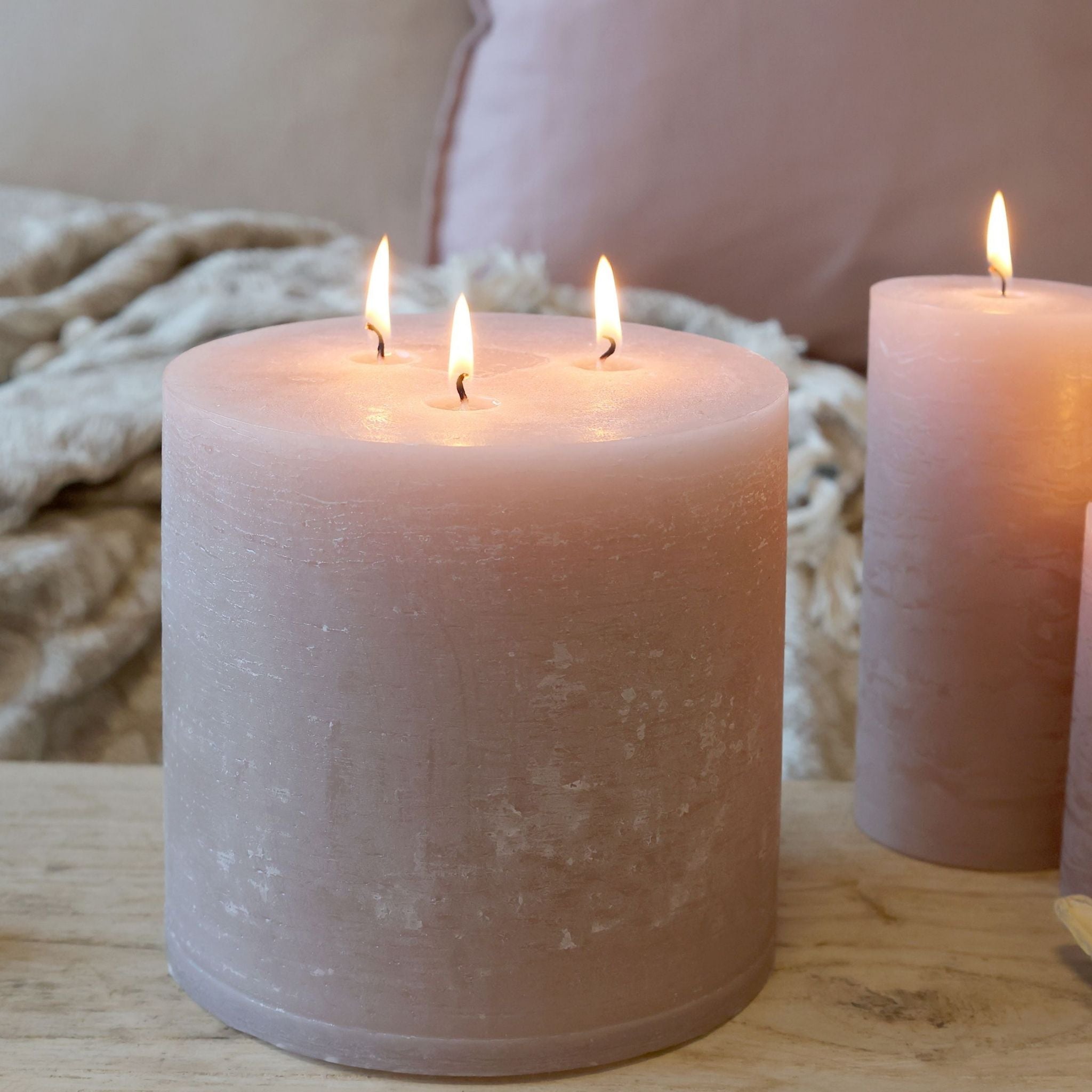 Wunderschöne, dekorative und rustikale Blockkerzen in einem schönen Rosaton von Chic Antique.