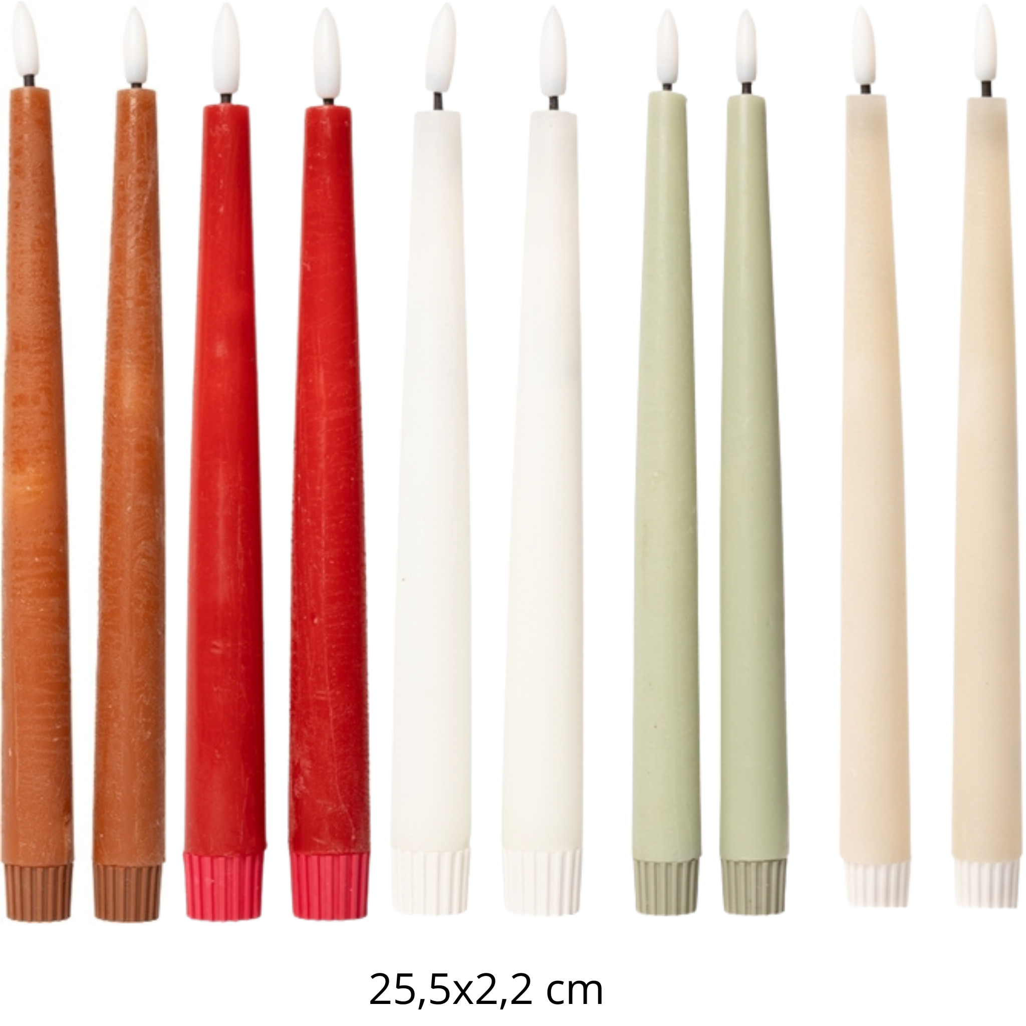 Schaffen Sie Atmosphäre mit LED-Kronleuchtern – rustikal und in mehreren Farben! Suchen Sie nach der perfekten Möglichkeit, Gemütlichkeit und Atmosphäre in Ihrem Zuhause zu schaffen? Unser rustikaler LED-Kronleuchter ist die ideale Lösung. Diese wunderschönen Kerzen sind so konzipiert, dass sie das warme und sanfte Leuchten echter Kerzen nachahmen, jedoch ohne die Sorgen, die mit lebendigen Flammen einhergehen. Wählen Sie aus einer Reihe von Farben, die perfekt zu jedem Anlass passen, egal ob Sie eine ruhige, warme Atmosphäre mit sanften Goldtönen oder eine festliche Stimmung mit leuchtenden Farben wünschen. Keine Flammen oder Rauch – einfach schönes Licht, das in jedem Raum sicher verwendet werden kann, auch wenn Kinder und Haustiere in der Nähe sind. Die LED-Technologie sorgt dafür, dass die Lichter länger halten und weniger Energie verbrauchen als herkömmliche Kerzen. Schaffen Sie eine Atmosphäre der Wärme und Gemütlichkeit im Wohnzimmer, Schlafzimmer oder bei festlichen Anlässen. Unsere rustikalen LED-Kronleuchter eignen sich sowohl für den täglichen Gebrauch als auch für besondere Anlässe. Holen Sie sie sich jetzt – erhellen Sie Ihr Zuhause mit Stil und Sicherheit!