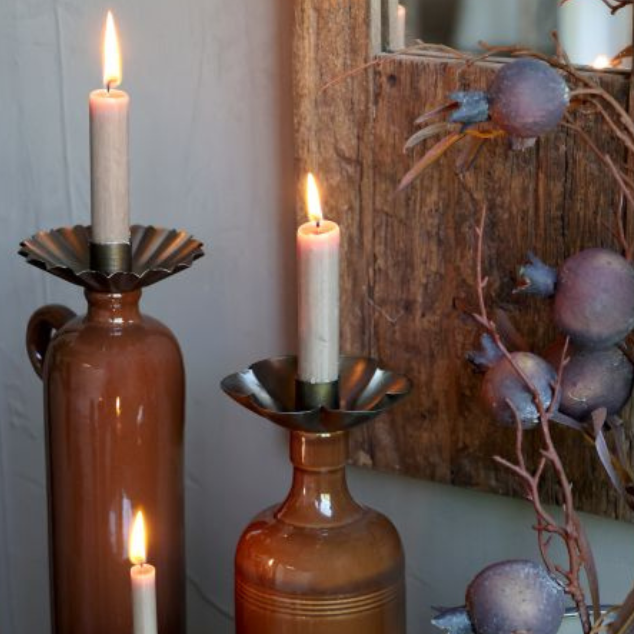 Kerzenhalter für Flasche oder Vase mit gewelltem Rand.