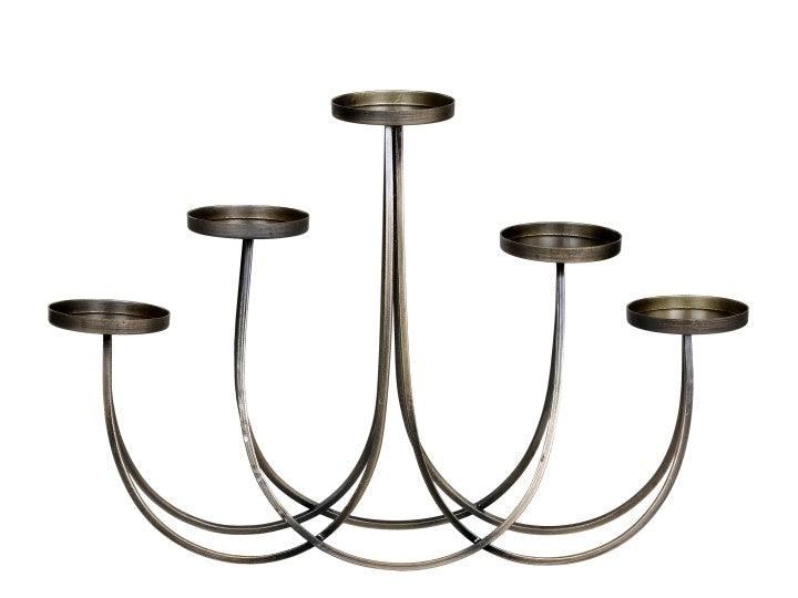 Chic Antique Stage mit 5 Kerzenhaltern für Blockkerzen ist ein wunderschöner Kerzenhalter, der jedem Raum eine anspruchsvolle und elegante Atmosphäre verleiht. Sein Design ist leicht und raffiniert mit minimalistischen und weichen Linien, die ihm einen zeitlosen Ausdruck verleihen. Die antike Messingoberfläche verleiht dem Kerzenhalter einen beruhigenden Glanz und Vintage-Charme.