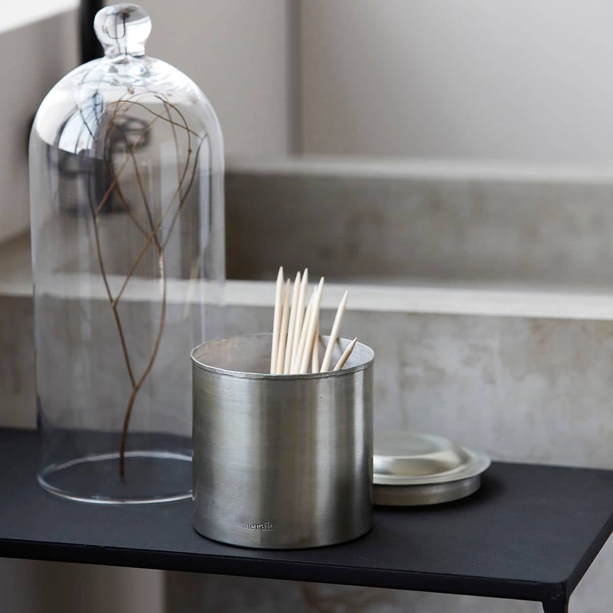 Bewahren Sie Ihre kleinen Dinge im Badezimmer mit dem Behälter von Meraki auf. Das Glas mit Deckel ist die perfekte Aufbewahrungslösung für die kleinen Dinge, die man nur schwer im Überblick behalten kann. Der Behälter besteht aus Aluminium und kann in feuchten Räumen aufgestellt werden. Es hat eine schöne Metalloberfläche und einen rustikalen Look.