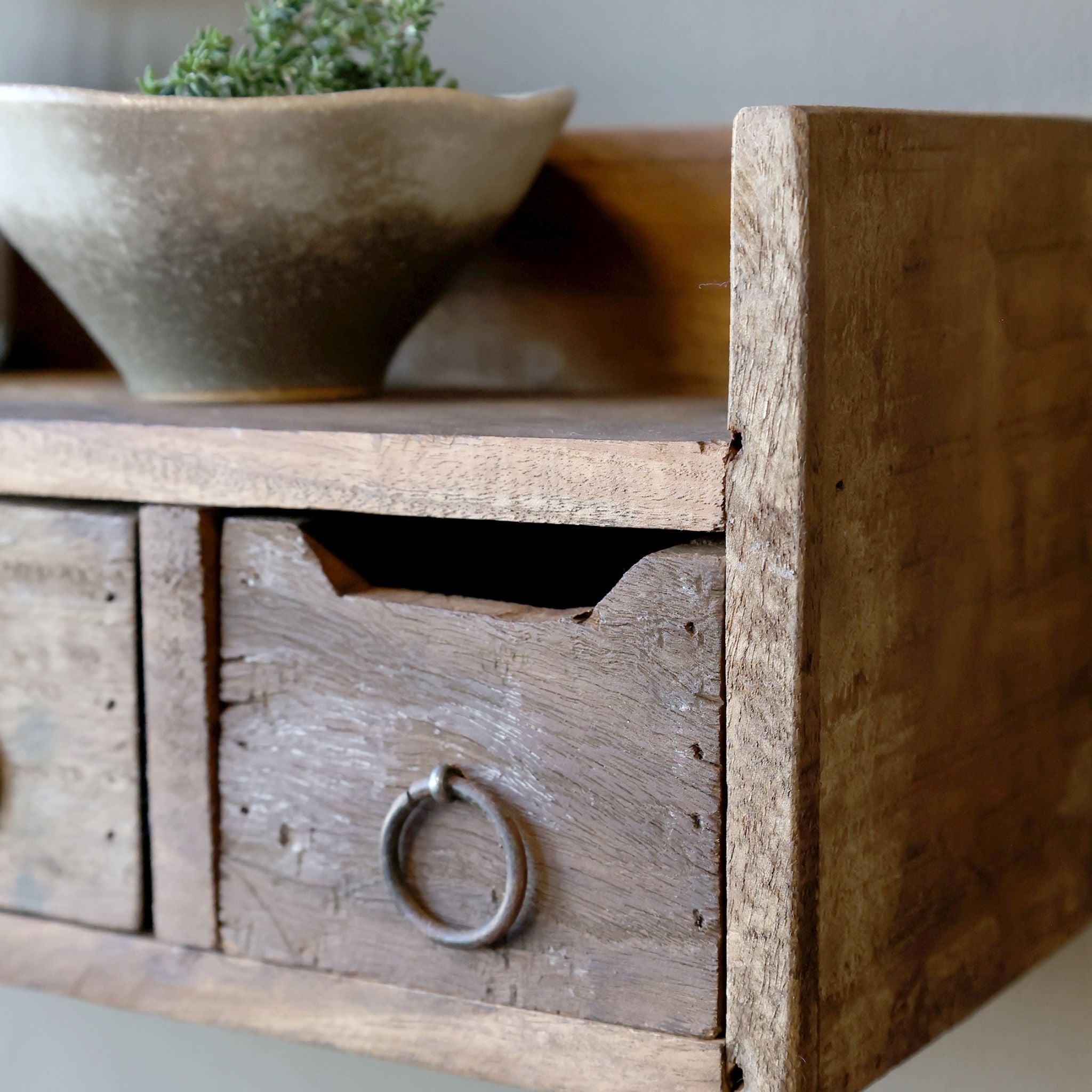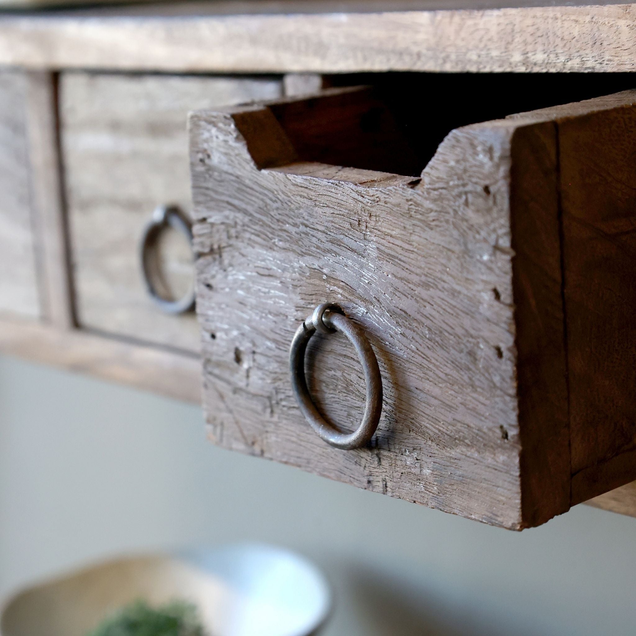 Das Grimaud-Regal mit drei Schubladen ist sowohl praktisch als auch stilvoll – gefertigt aus wunderschönem Recyclingholz, das jedem Möbelstück sein eigenes, einzigartiges Aussehen verleiht.